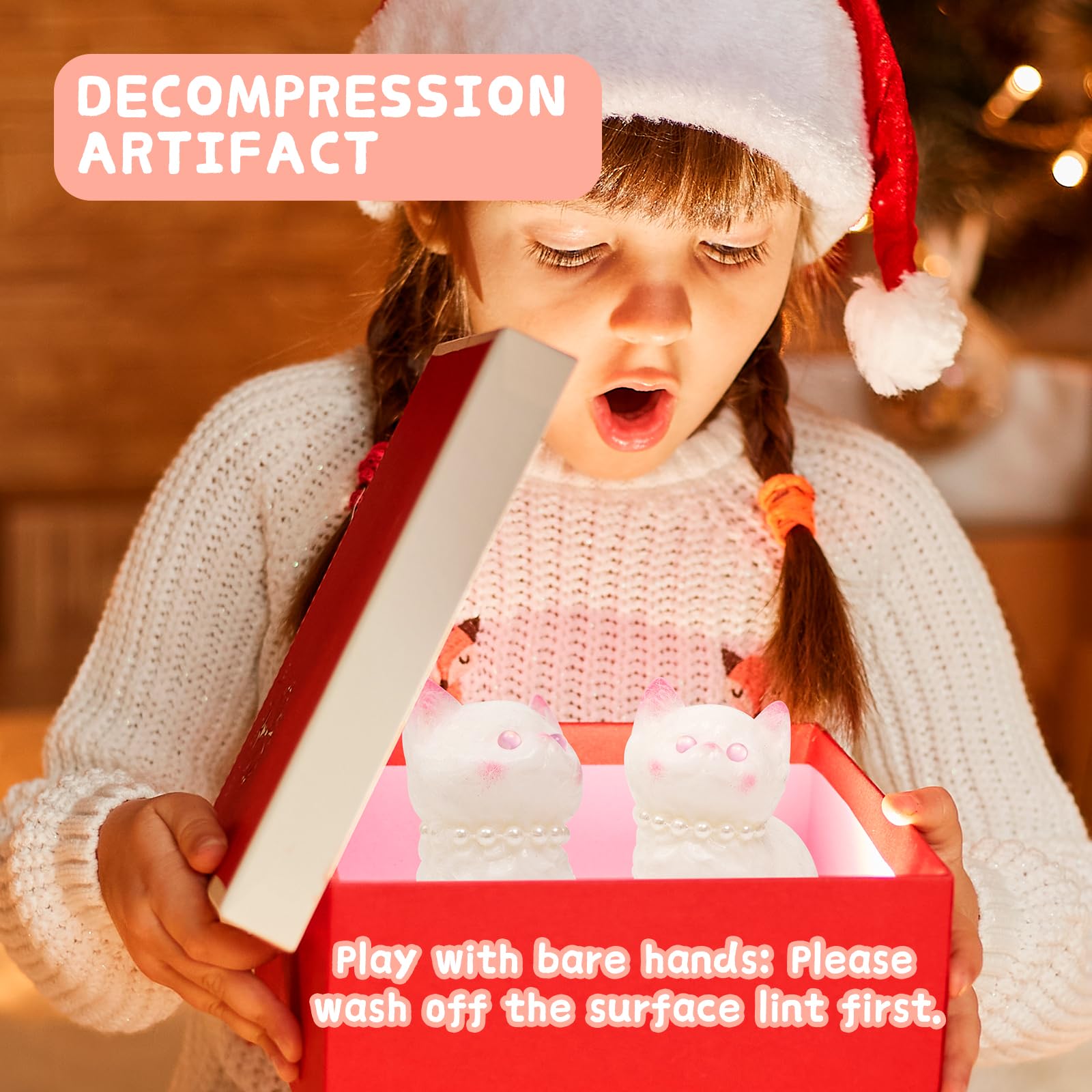 Cat Squishies Toy,2pcs White Cat Squeeze Animal Toys,Simulation Dog Stress Relief Toy Furry Squish Novelty Toy with PVC Packaging Gift for Kids Adults