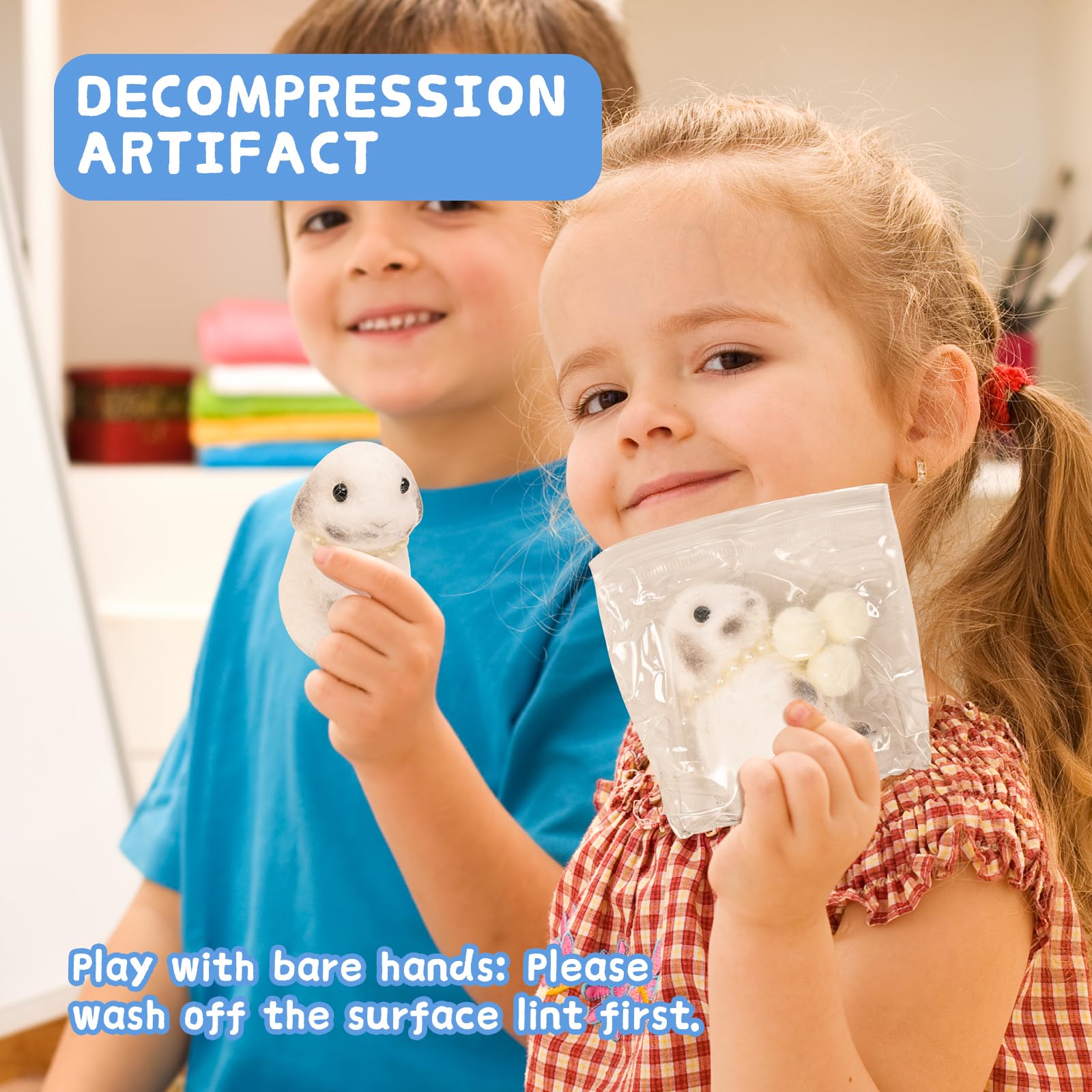Rabbit Squishies Toy,2pcs White Bunny Squeeze Animal Toys,Simulation Bunny Stress Relief Toy Furry Squish Novelty Toy with PVC Packaging Gift for Kids Adults