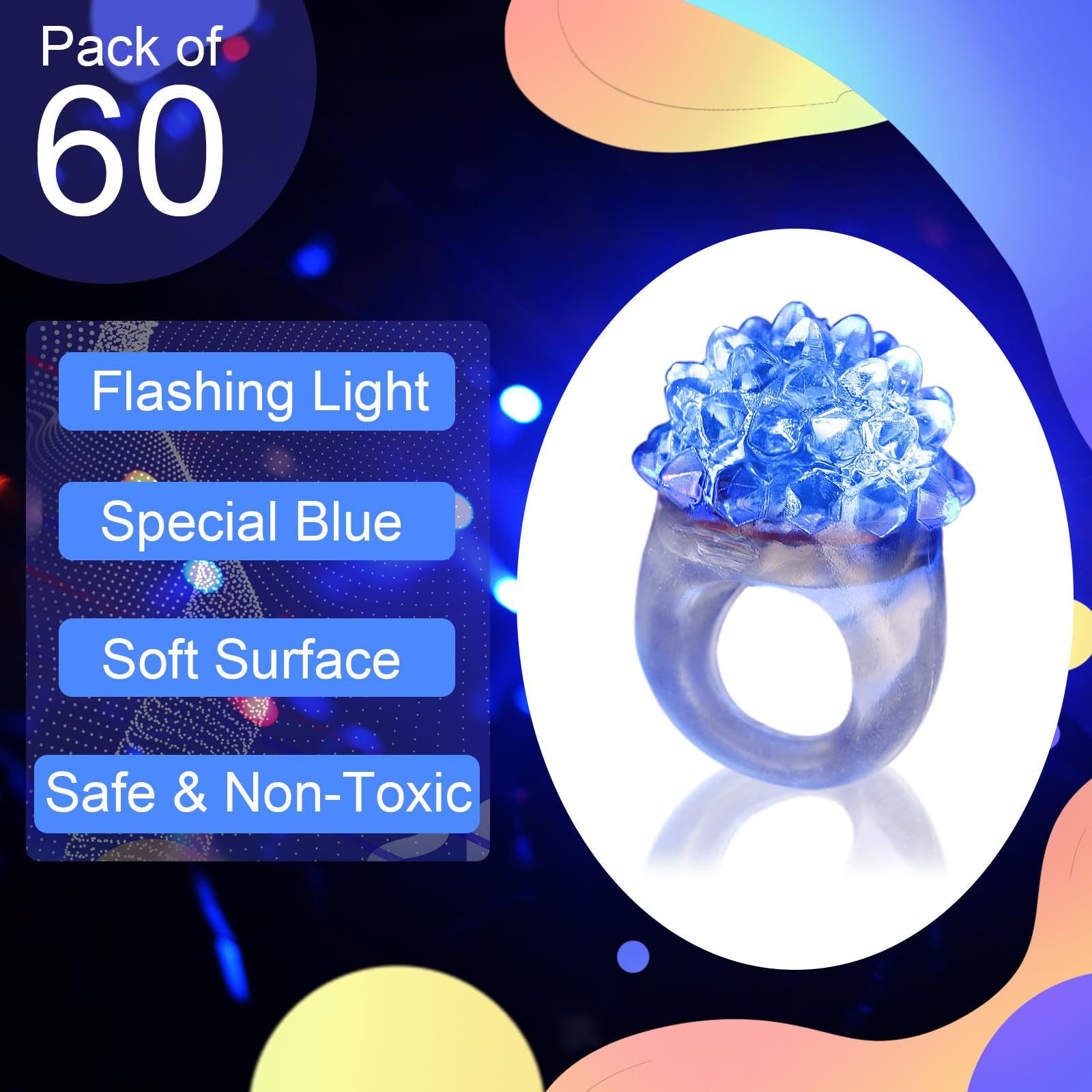 LACGO 60 PCS Halloween LED Flashing Bumpy Rings - Jelly Blinking Rubber Rings with Blue Light mature-themed Novelty Favor Glow up Finger Toys Gift for Birthday Bachelorette Parties Wedding Prizes