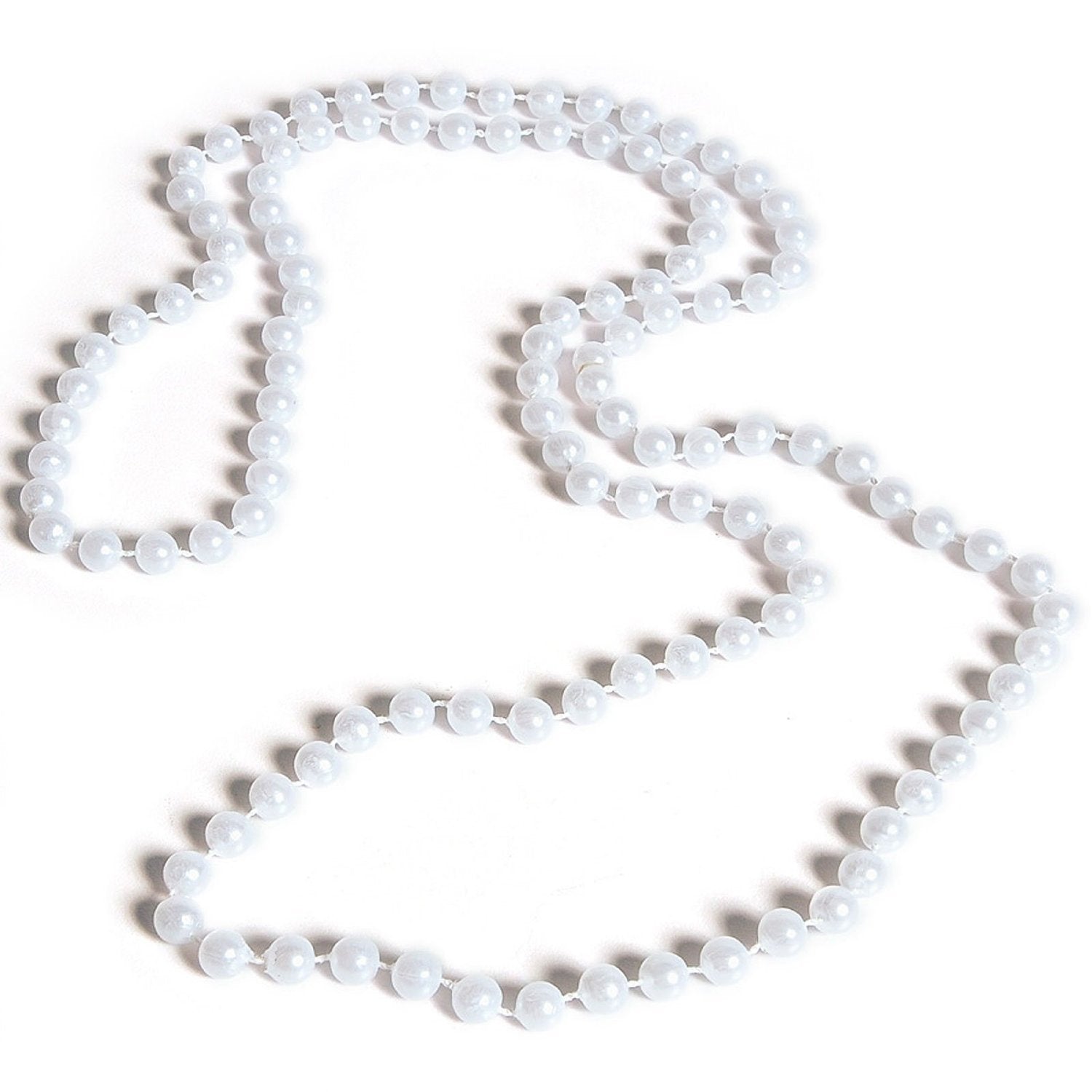 Product DescriptionAn elegant adornment, never lacking in luster. These beautiful necklaces feature 7-millimeter pearls on a 48-inch strand. Each order contains one dozen(12) necklaces. Ages 12+From the ManufacturerWonderful dress-up beads for a tea party or Mardi Gras themed party. You will get 12 white beaded necklaces per order. These necklaces are great as party favors and fun for dress up. Great for kids and adults alike.