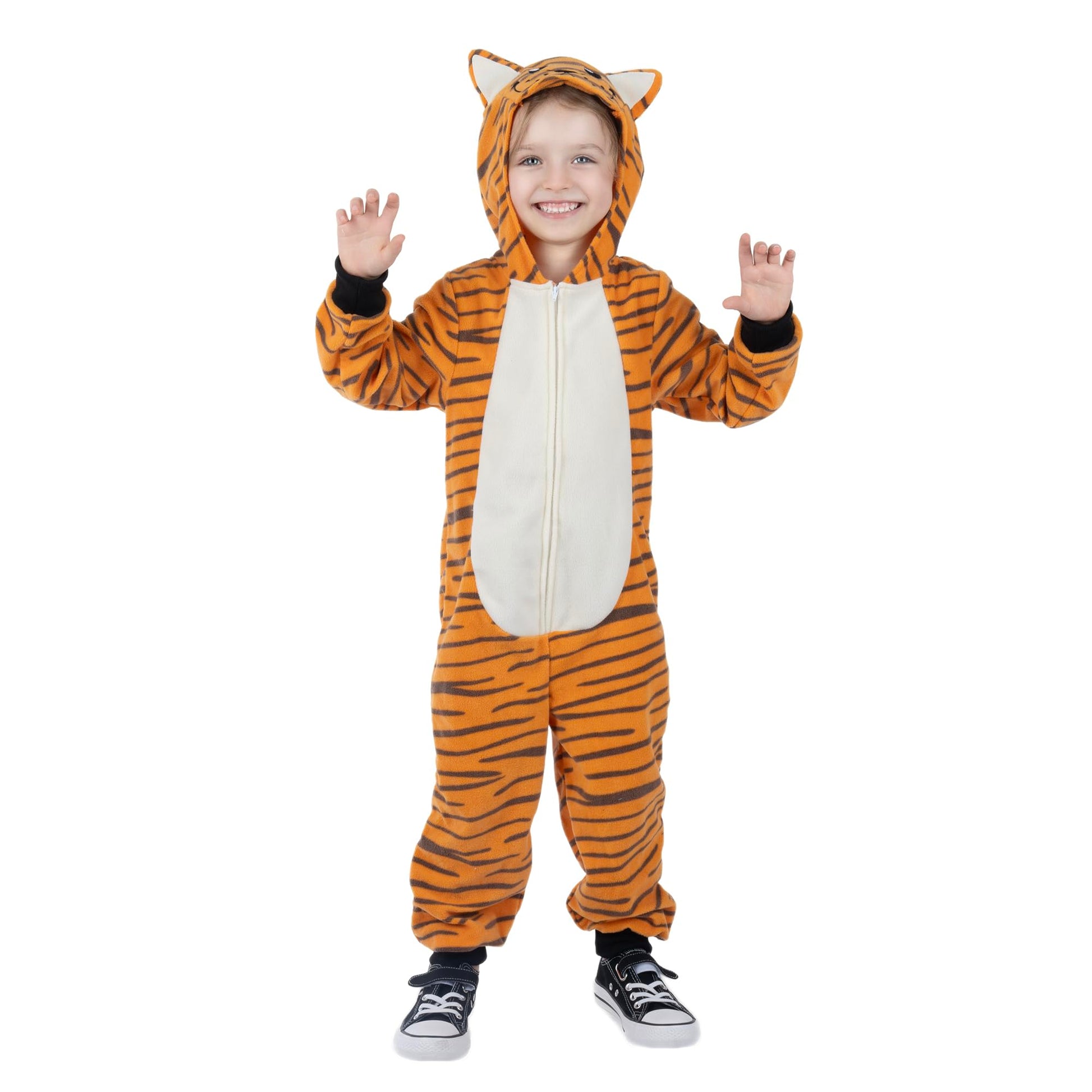 Sincere Party Tiger Onesie Novelty Tiger Jumpuit with EMB Face Costume for Kids S(4-6)