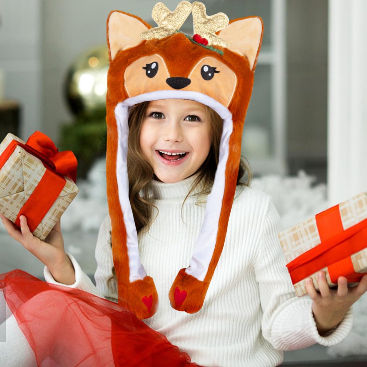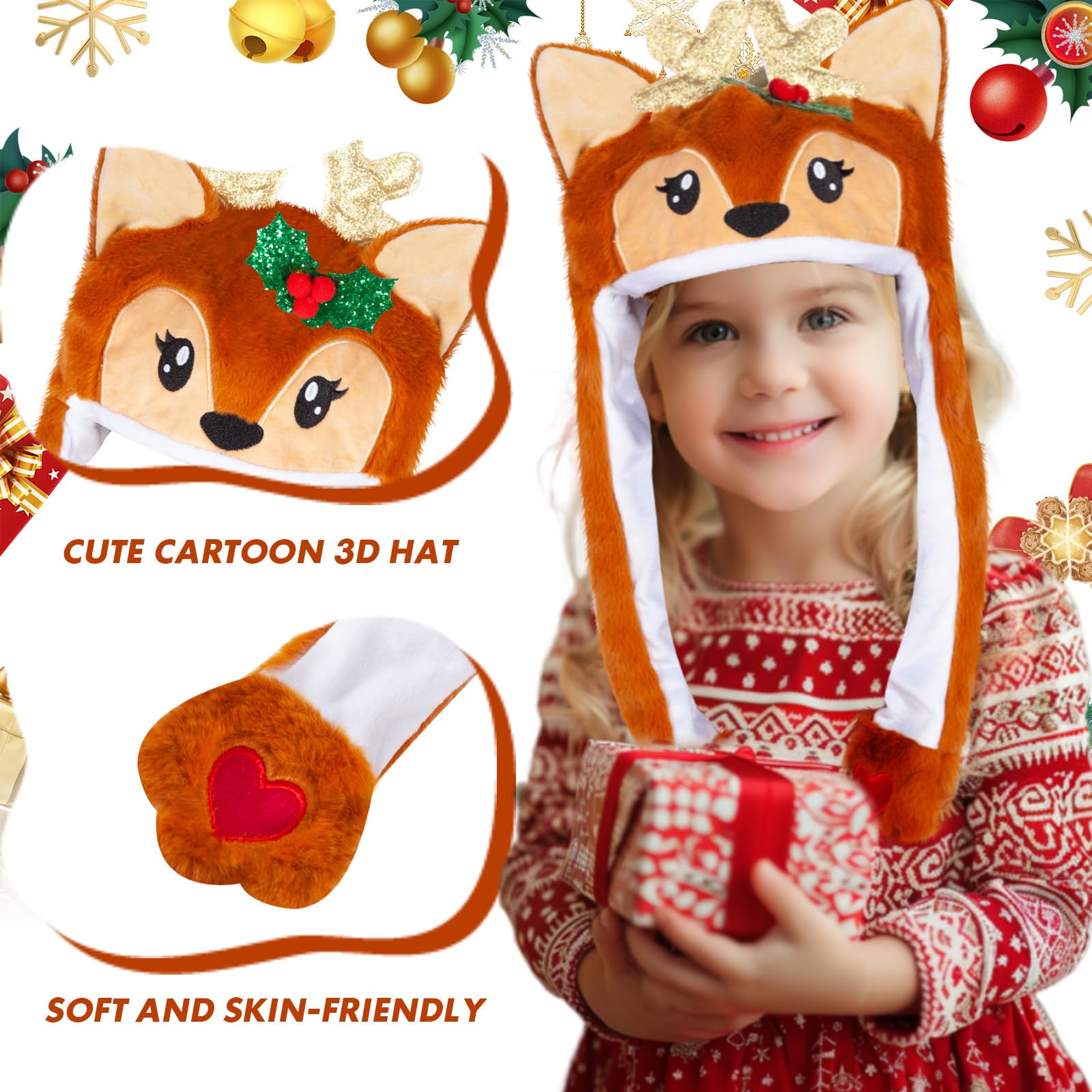 Plush Cartoon Animal Hat: Made of velvety-soft plush material; With moving jumping ear, it can flap its ears; Press the paws, the ears on the same side will move up and down, very funny | Cute 3D Moving Elk: Designed with 3D Elk image, bright color and cute image; Perfect for wearing it at the theme party, including cosplay, dressing up, birthday, Halloween, Easter party, Christmas | Perfect Gift for Kids: A funny and speacil gift for your kids, friends, daughter, sons, sister or best friend; Kids can play with their friends, cute image and moving ear can bring more fun for them | Funny Pop Up Hat: Our animal hat with moving ears for kids and adults, smooth and comfortable; Take the most speacil photos with your funny elk when you go to a party | Sales Service: Any problem with our hat, please feel free to contact us, we are here with you anytime