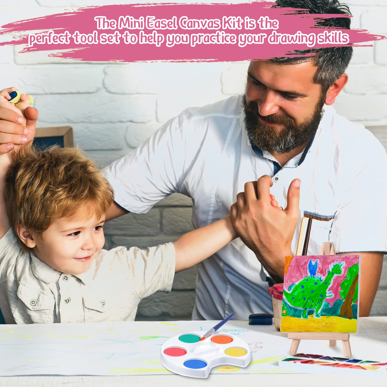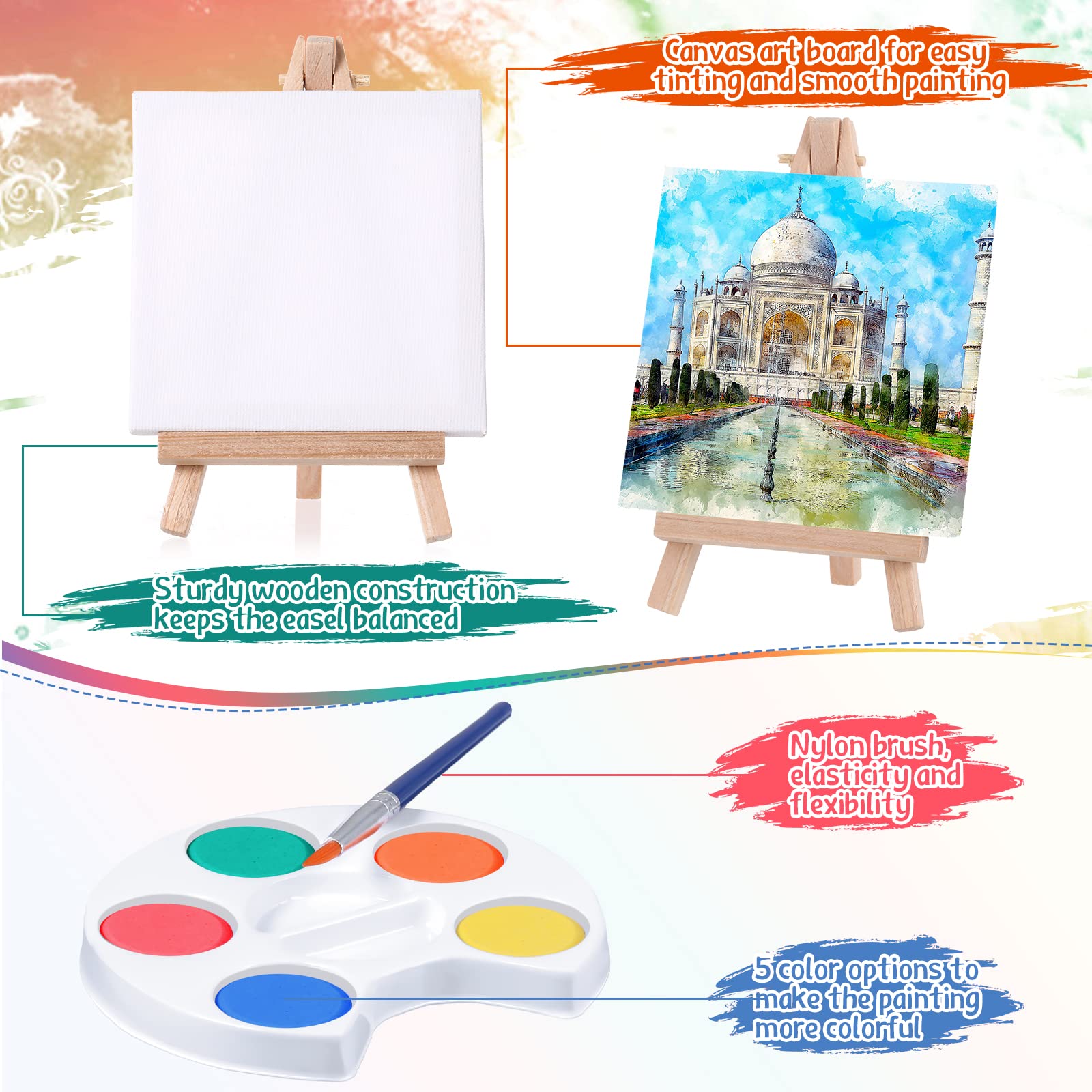 Crtiin Watercolor Paint Sets Mini Paint Set 4x4 Small Painting Canvas with Easel Paints Brush Set Art Party Favors and Watercolo