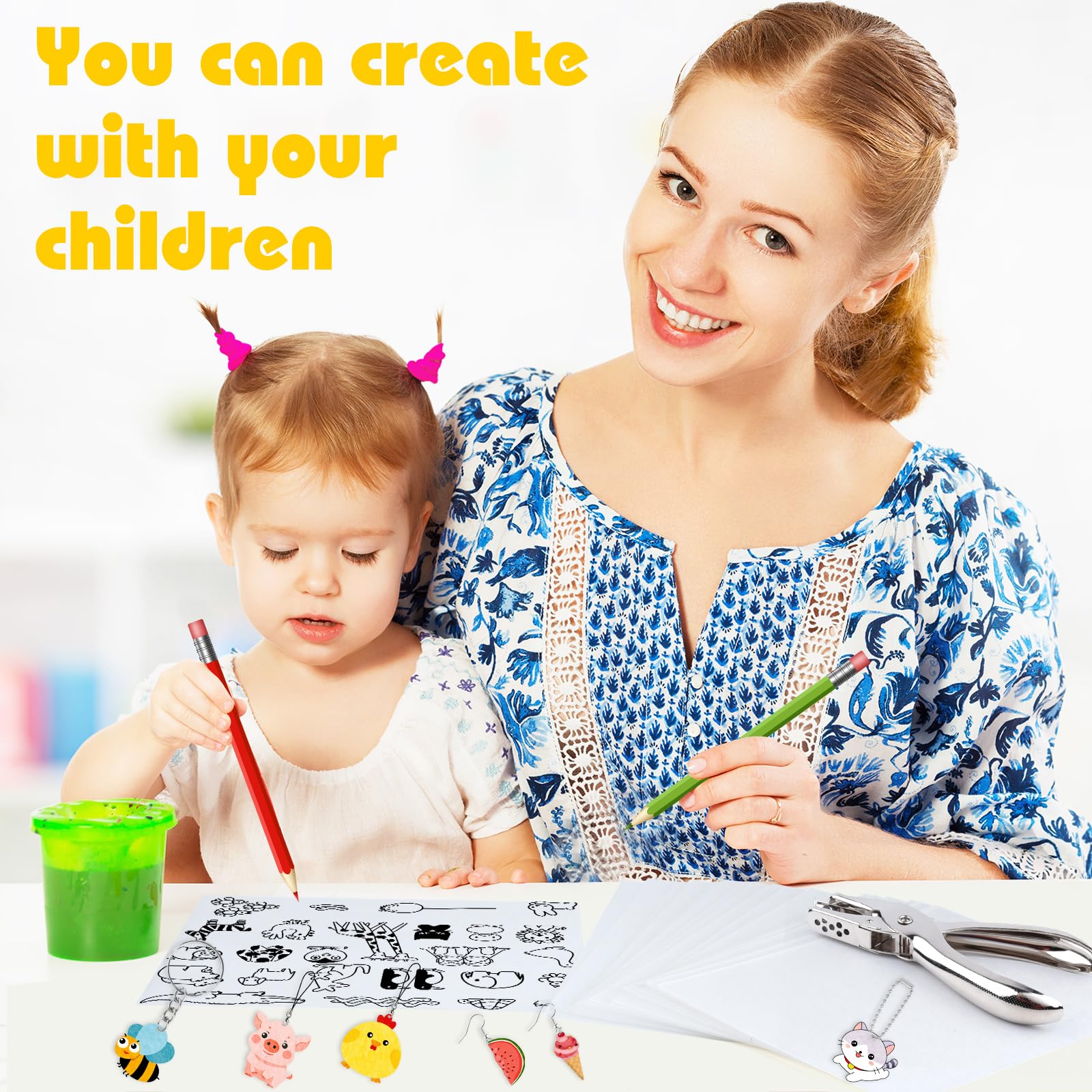 Bouiexye 146 Pcs Heat Shrink Plastic Sheet Shrinky Art Kit 20 Pcs Shrink Paper Keychain Kit for Crafts Handprint Mothers Day Ma