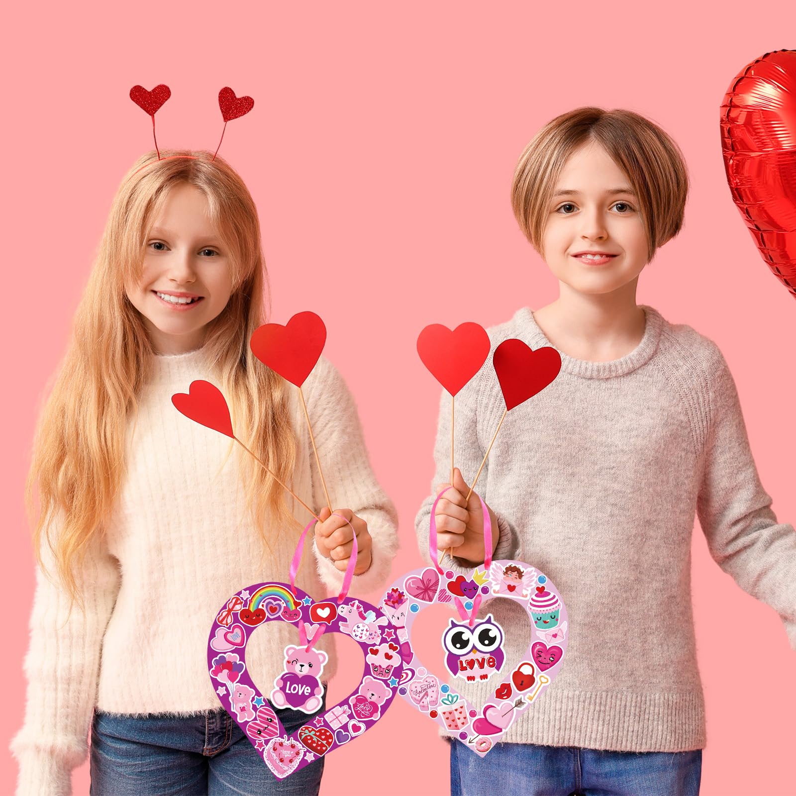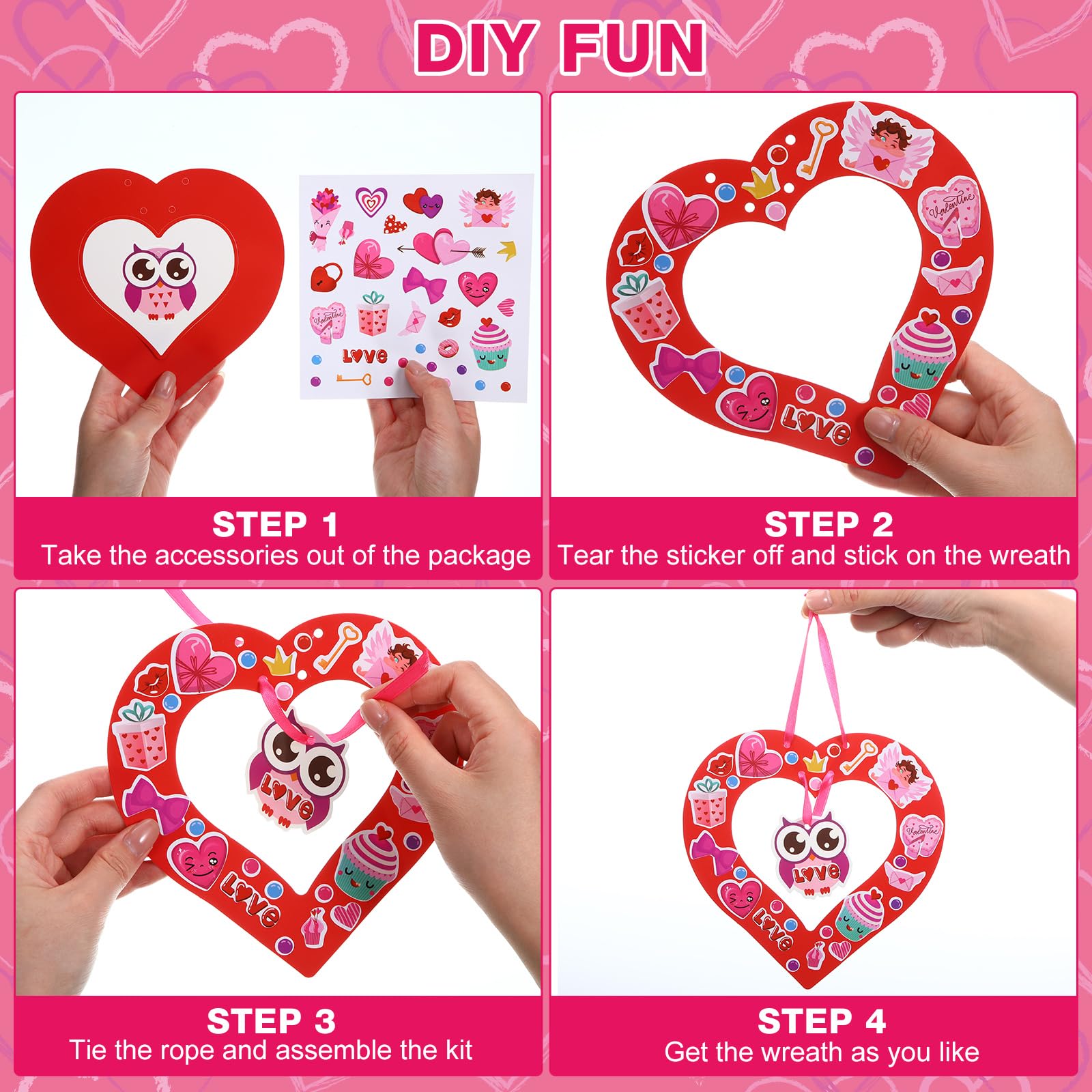 DoubleFill 24 Sets Valentines Day Crafts Kit Make Your Own Heart Wreath Ornaments Valentines DIY Card Cute Stickers Bulk Valent