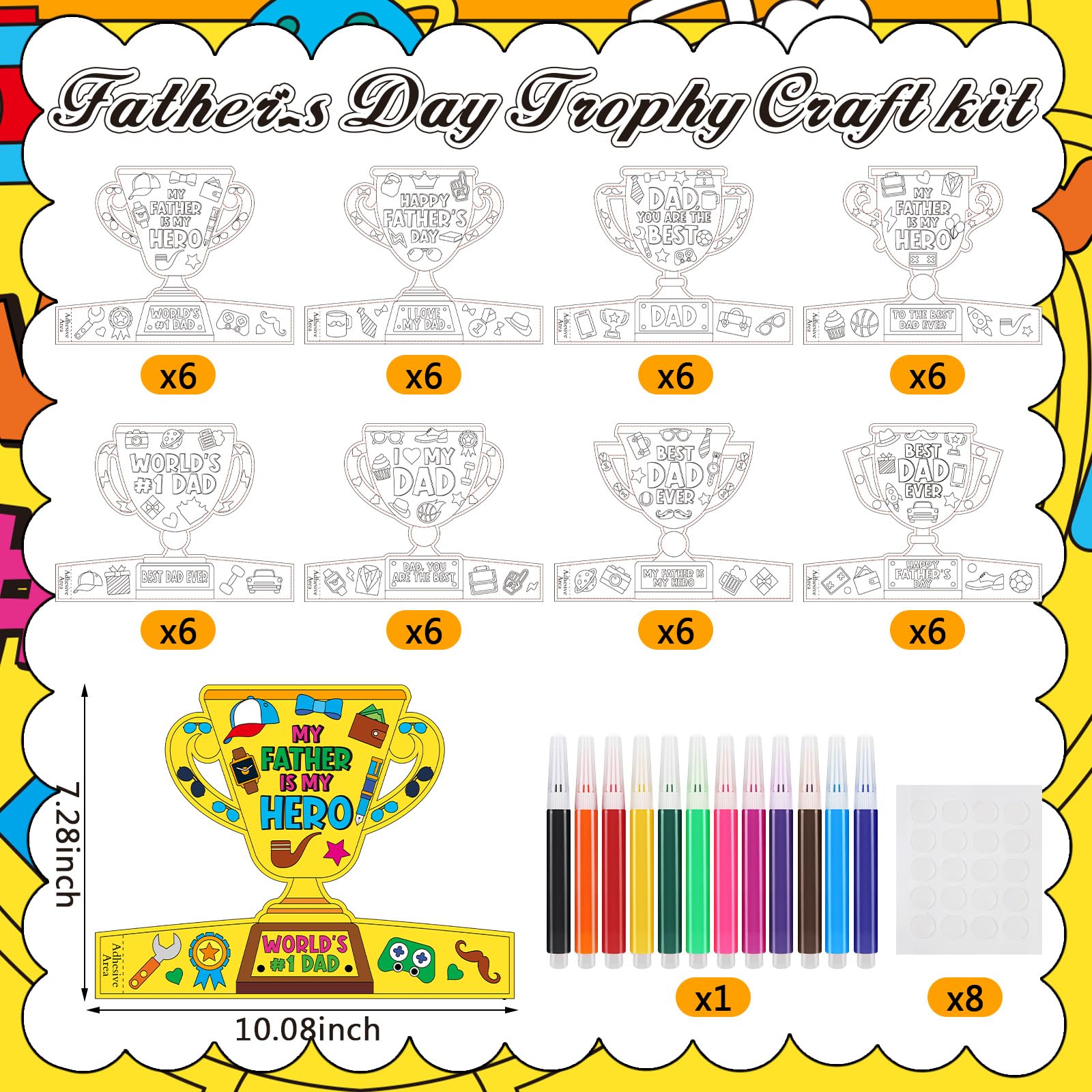 View compareDunzoom 48 Pcs Fathers Day Trophy Craft Kit Color Your Own Fathers Day DIY Crafts Coloring My Father is My Hero DIY Dad Gift S