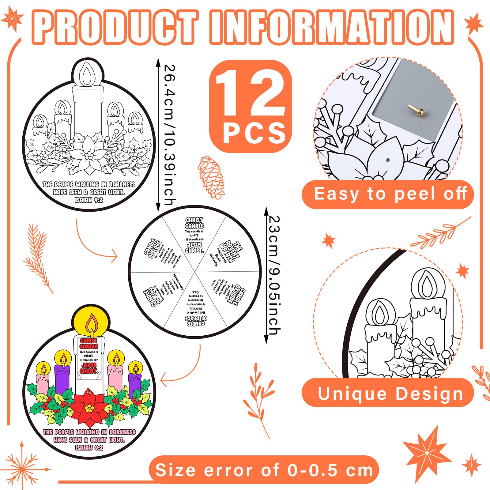 Hollowfly 12 Sets Color Your Own Advent Wreath Crafts DIY Advent Candle Scene with Joy Christ Peace Love Hope Crafts Religious C