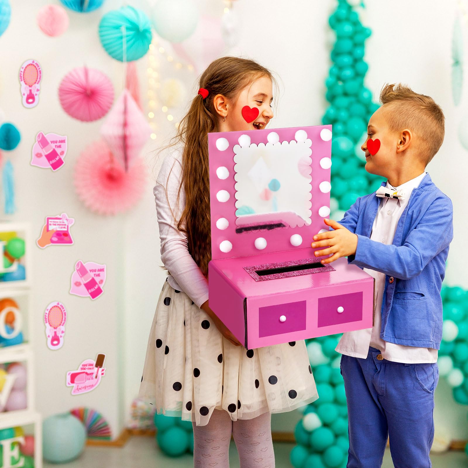 Features: Promotes Creativity and Expressive Skills: This set not only brings joy, but also stimulates creativity and encourages expressive skills. The Valentines Day box for school assembly and card writing give children an opportunity to express their affection for their classmates, friends, teachers, and family. Ideal Valentines Day Gift for Classrooms: Classroom Valentines Day parties just got more exciting with these makeup desk boxes and lively cards. They are suitable for childrens Valentines Day gatherings, making the occasion more fun and memorable. Specifications: Material: paper Color: multicolor Size: about 9.8 x 8 x 3.9 inches / 25 x 20 x 10 cm (L x W x H) Package includes: 1 x Valentine Boxes 32 x Valentines Greeting Cards Notes: Manual measurement, please allow slight errors on size. The color may exist a slight difference due to different screen displays.