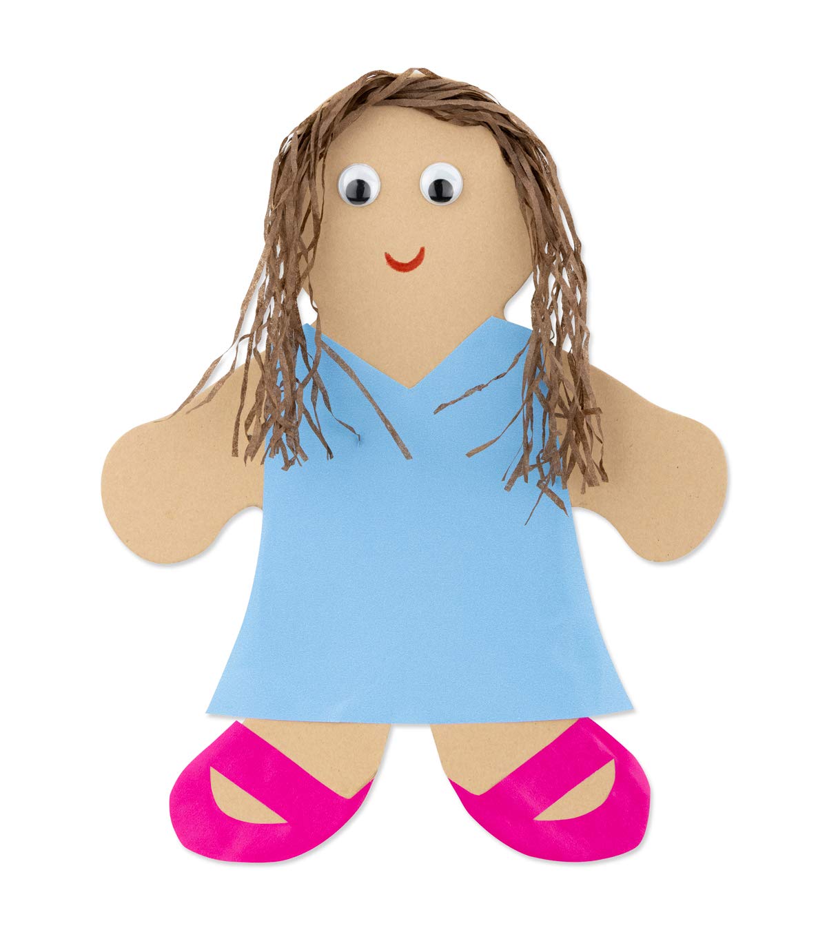 Let kids create their own kid pals with this people-making kit! This creative set has 24 people shaped cardstock cut-outs (measuring 7 inches tall) and a bundle of fun craft materials for kids to dress up and decorate the cardboard people with. A variety of skin tone colored paper celebrates multi-ethnic diversity, while colorful assorted buttons and other accessories promote individuality and power of choice. Included velour squares and gummed paper can be cut into clothes, shoes, and other accessories. Curly mop paper hair (in 4 choices of color), wiggle eyes, and more lend even more realistic appeal. Designed for ages 3 and up.
