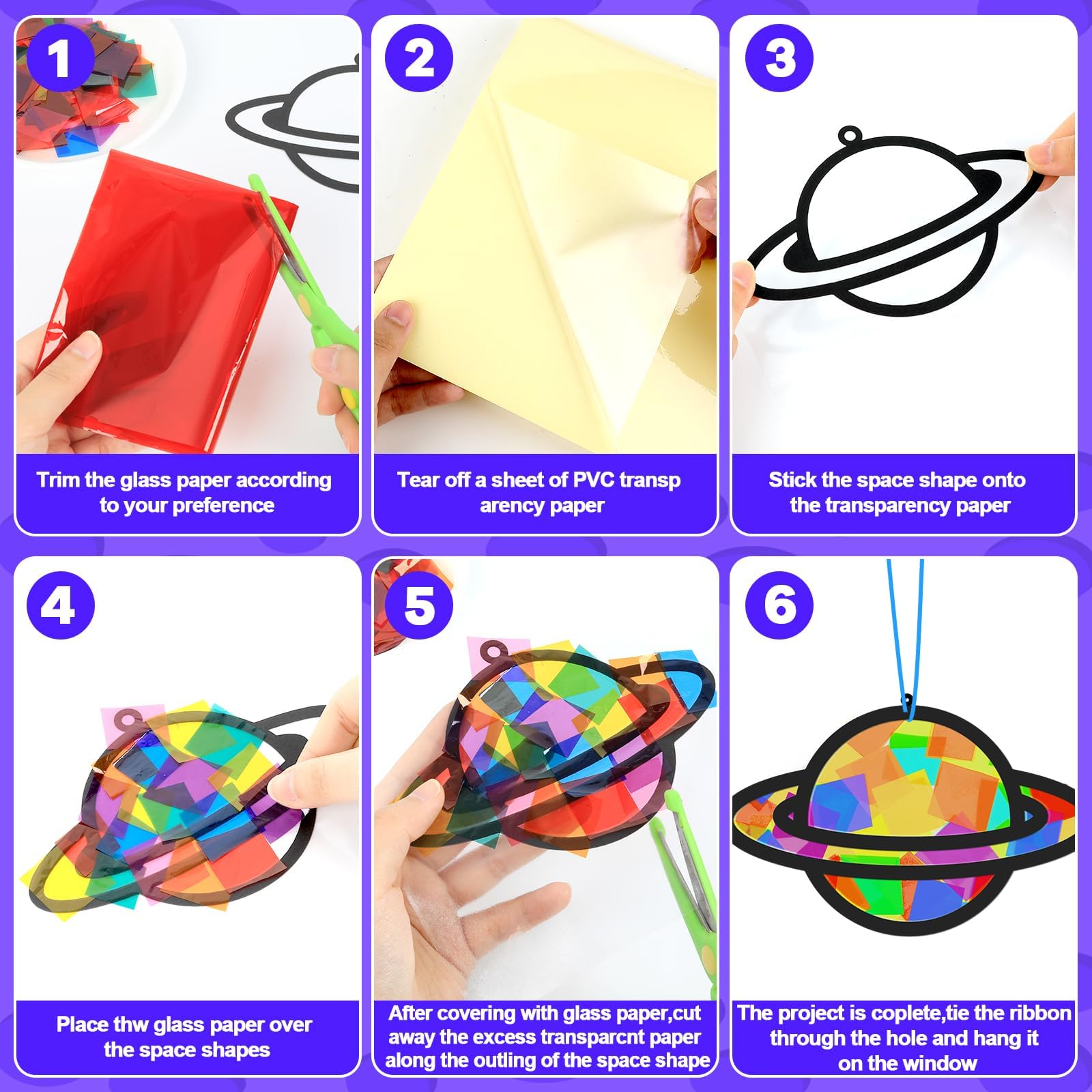 Lonfliness 32 Sets Solar System Suncatchers Crafts Kit DIY Outer Space Stained Glass Effect Paper Planet Crafts for Home School Classroom Decor Kid Birthday Gifts Creative Art Projects Activity Unleash your childs creativity with the Solar System Suncatcher Craft Kit, a fun and educational DIY project that brings the wonders of the solar system into your home. This all-in-one craft kit is designed to let kids craft their own vibrant suncatchers featuring exciting space-themed designs, including the sun, planets, rockets, and spaceships. Specifications: Material: plastic Size: as shown in the picture Color: colorful Package Includes: 32 x flower pot template 32 x PVC transparent stickers A set x cellophane 32 x ribbons Ideal for young explorers, this kit encourages imaginative play and hands-on crafting, all while creating stunning, colorful decorations that brighten up any room. The solar system suncatcher craft kit is vibrant designs are sure to engage kids imaginations and allow them to express their creativity while learning about space.