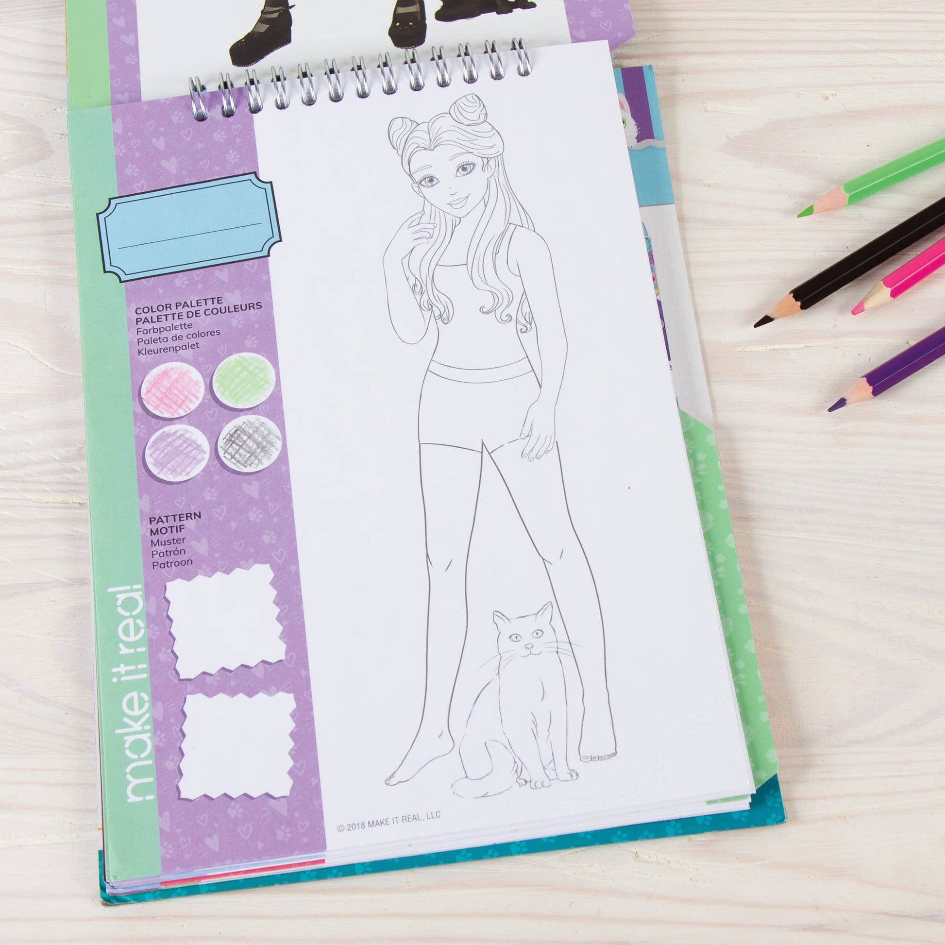 View compareMake It Real - Fashion Design Sketchbook: Pretty Kitty. Cat Inspired Fashion Design Coloring Book for Girls. Includes Sketchbook