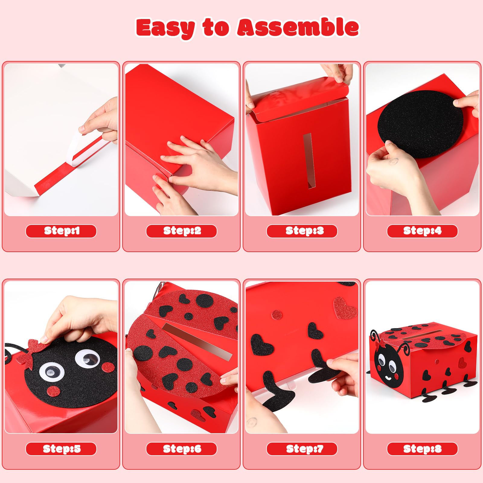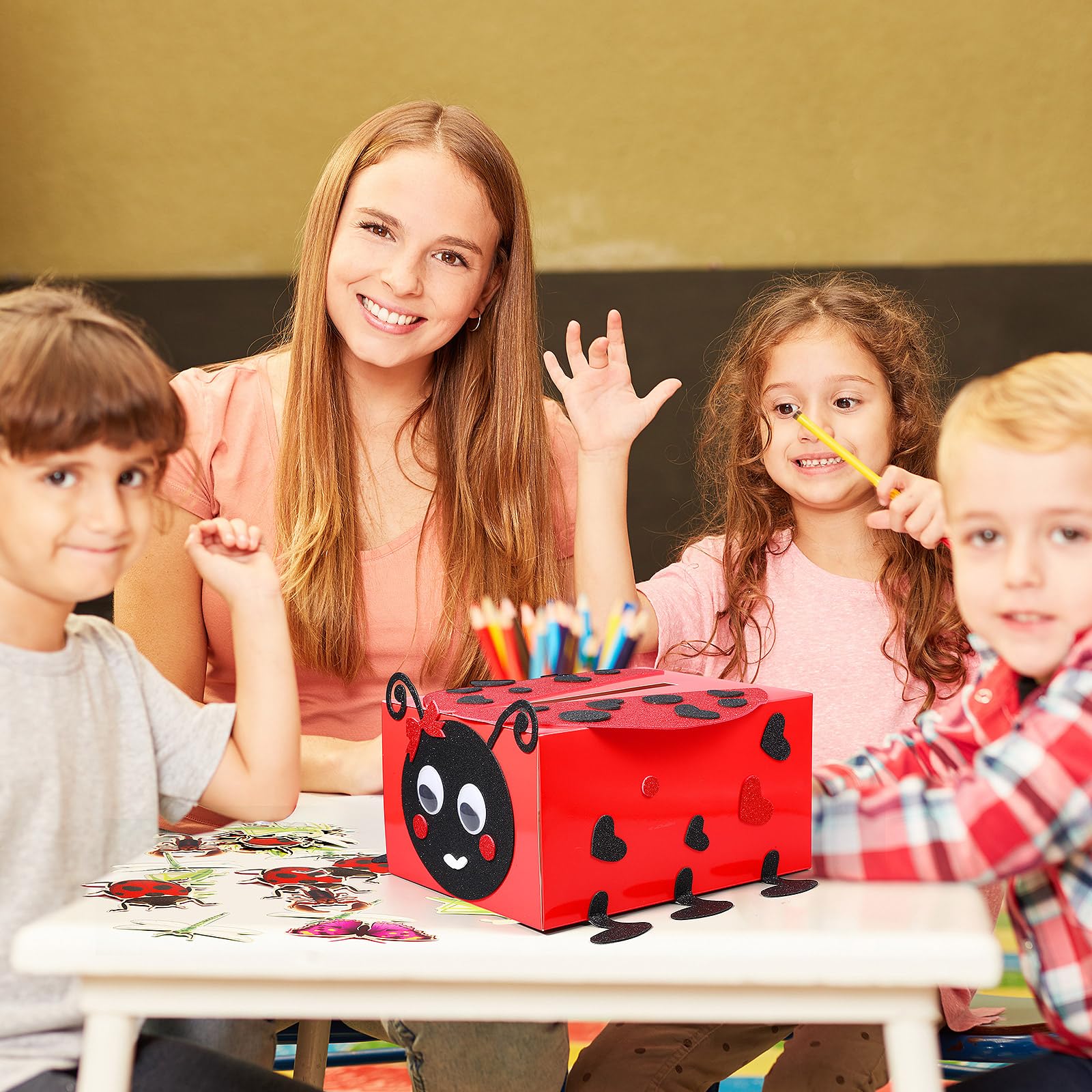 Pasimy DIY Valentines Card Boxes with 30 Insect Greeting Cards DIY Valentine Ladybug Mailbox Craft Kits Valentines Day Love Bug