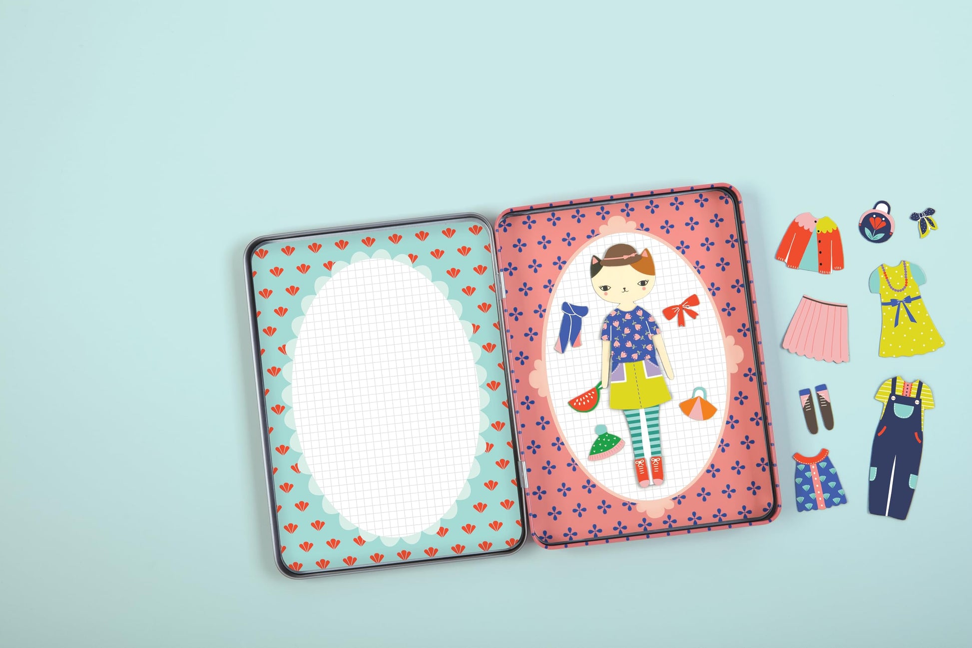 'With Two Adorable Feline Figures And Numerous Outfit Options, Your Budding Fashionista Can Create Many Exciting Scenes With The Mudpuppy Cat Fashion Magnetic Dress-Up Play Set. The Magnetic Dress-Up Dolls Playset Includes Four Illustrated Background Scenes On Two Double-Sided Cards, Three Sheets Of Interchangeable Magnets Including Two Magnetic Cat Figures, And A Variety Of Outfits And Accessories, All Stored In A Sturdy 6.25 X 8.75 X 1'''' Hinged Magnetic Tin. A Perfect Travel And Quiet Time Activity For Kids Ages 4 And Up, The Hinged Tin Of The Cat Fashion Playset Also Acts As A Flat Surface To Decorate The Scenes And Store All Of The Pieces, As The Magnets Adhere To The Package. The Cat Magnet Dress-Up Tin Is The Winner Of The Tillywig Top Fun Award And Iparenting Best Product Award For Superior Childrens Products.For Over 25 Years, Mudpuppy Has Created Quality Non-Digital Puzzles, Games, And Toys For Children And Families That Facilitate Creative Play And Imaginative Thinking. All Mudpuppy Products Adhere To Cpsia, Astm, And Ce Safety Regulations.''