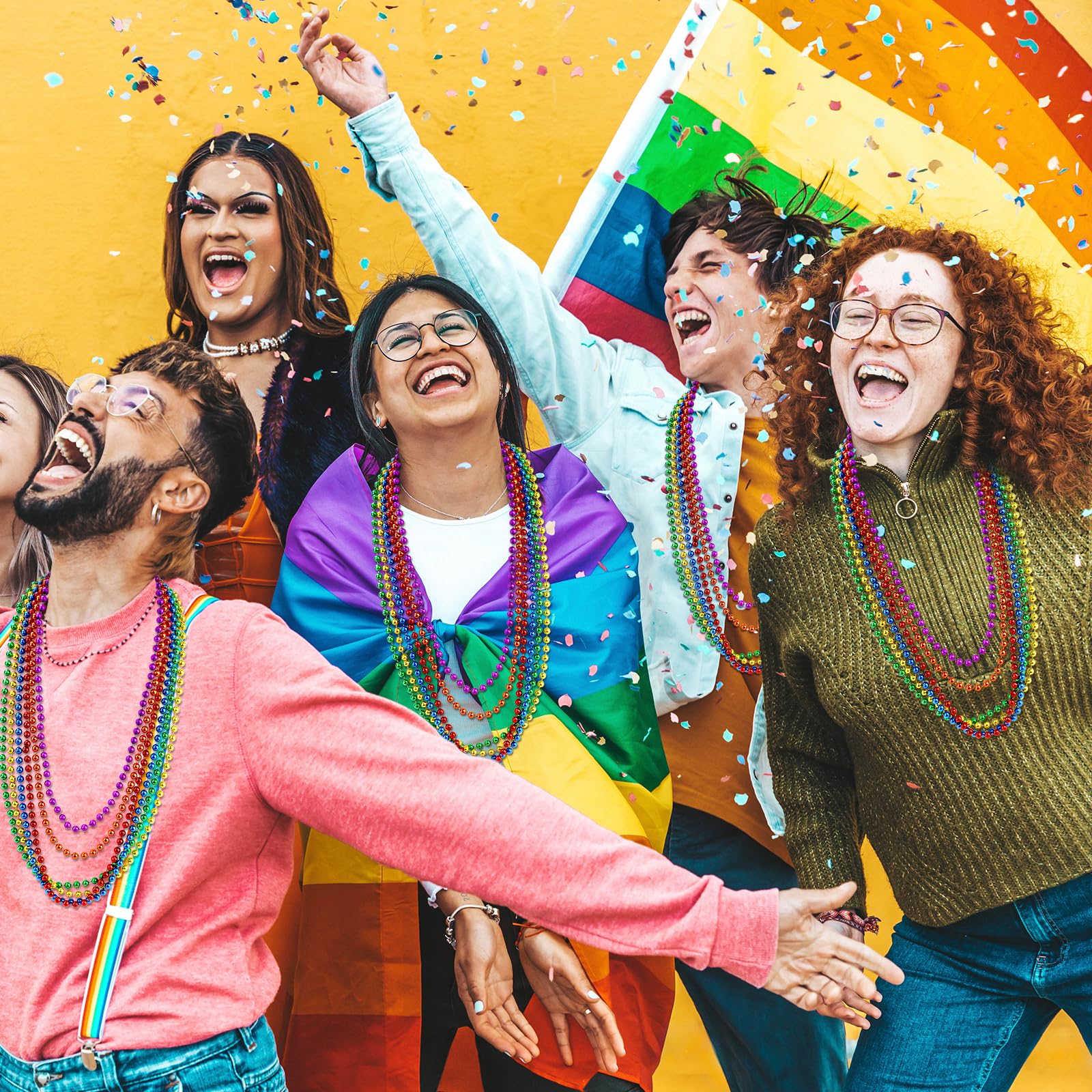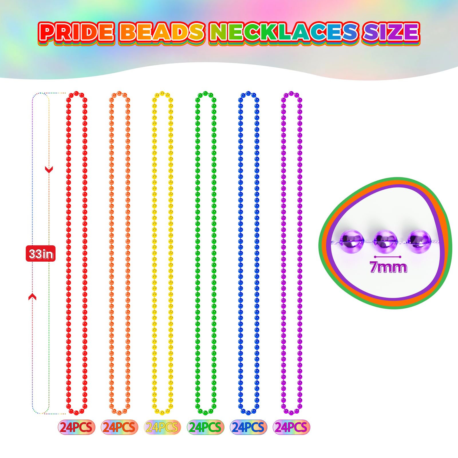 144 Pcs Pride Beads Necklaces, Pride Accessories, Metallic Pride LGBTQ Rainbow Beads Necklaces Bulk, Pride Beads Stuff for Gay Lesbian Pride Month Parade Throws Rainbow Pride Party Favors in 6 Colors