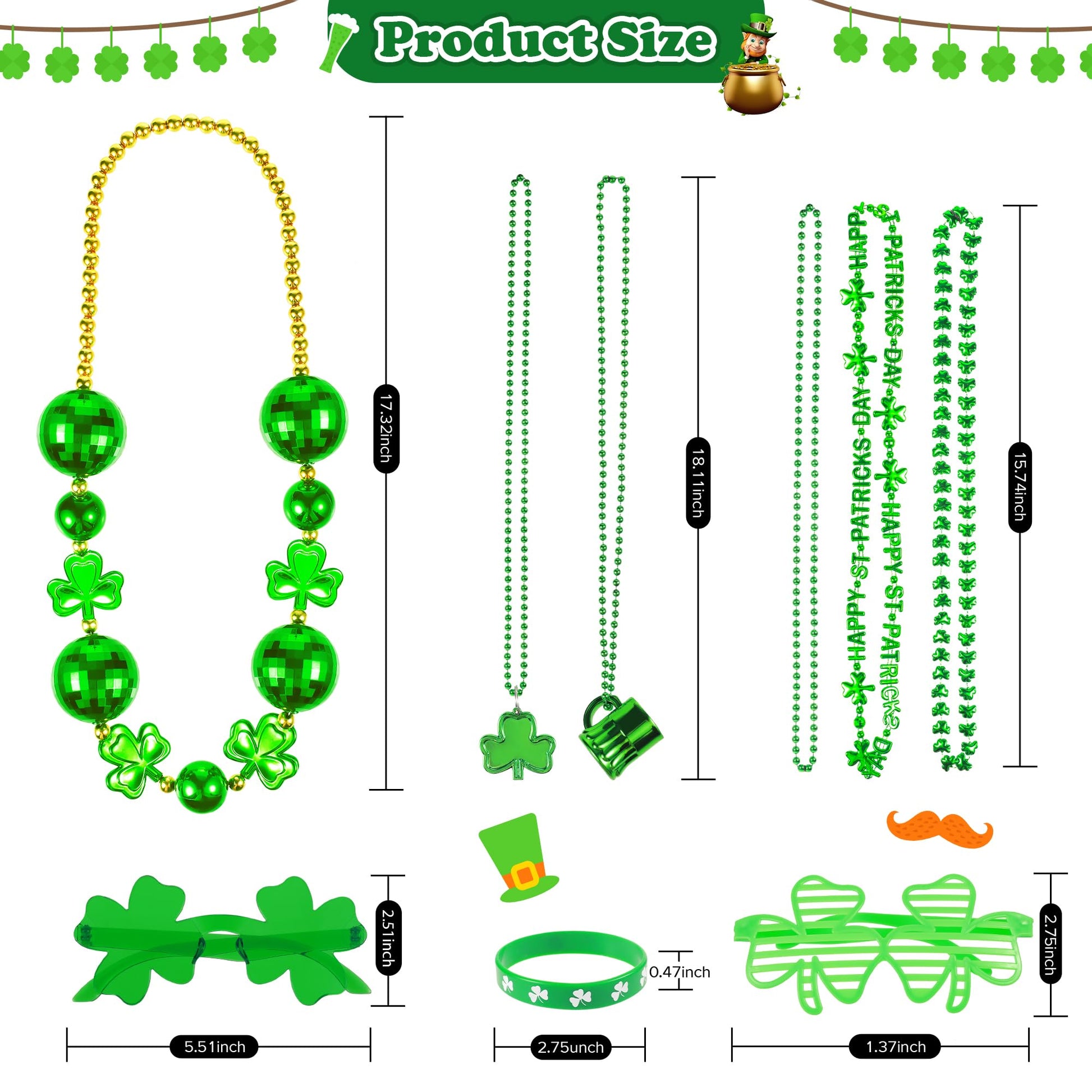 50 PCS St Patricks Day Decorations, St Patricks Day Accessories with 9 Green Shamrock Glasses, 27 Necklaces, 24 Bracelets, St Patricks Day Favors Set for Irish Party Decor Novelty Parades Supplies st patricks day decorations st patricks day decor st patricks day accessories st patricks day wreath st patricks day garland st patricks day table runner window clings st patricks day ornaments for tree st patricks day headband st patricks day gifts