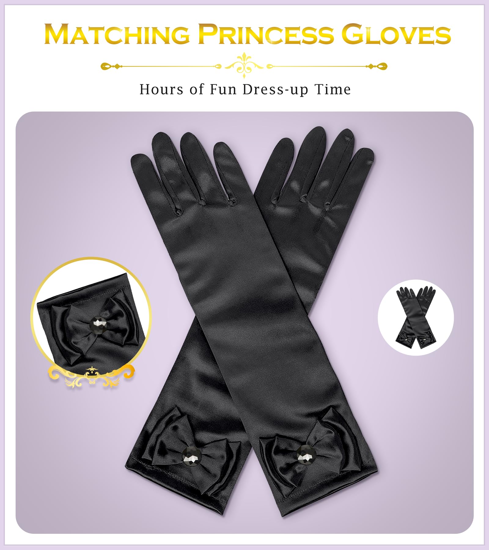 Bibuty Princess Dress Up Accessories Princess Gloves For Little Girls, Black Toddler Gloves For Girls Princess Dress Up Set, Cos