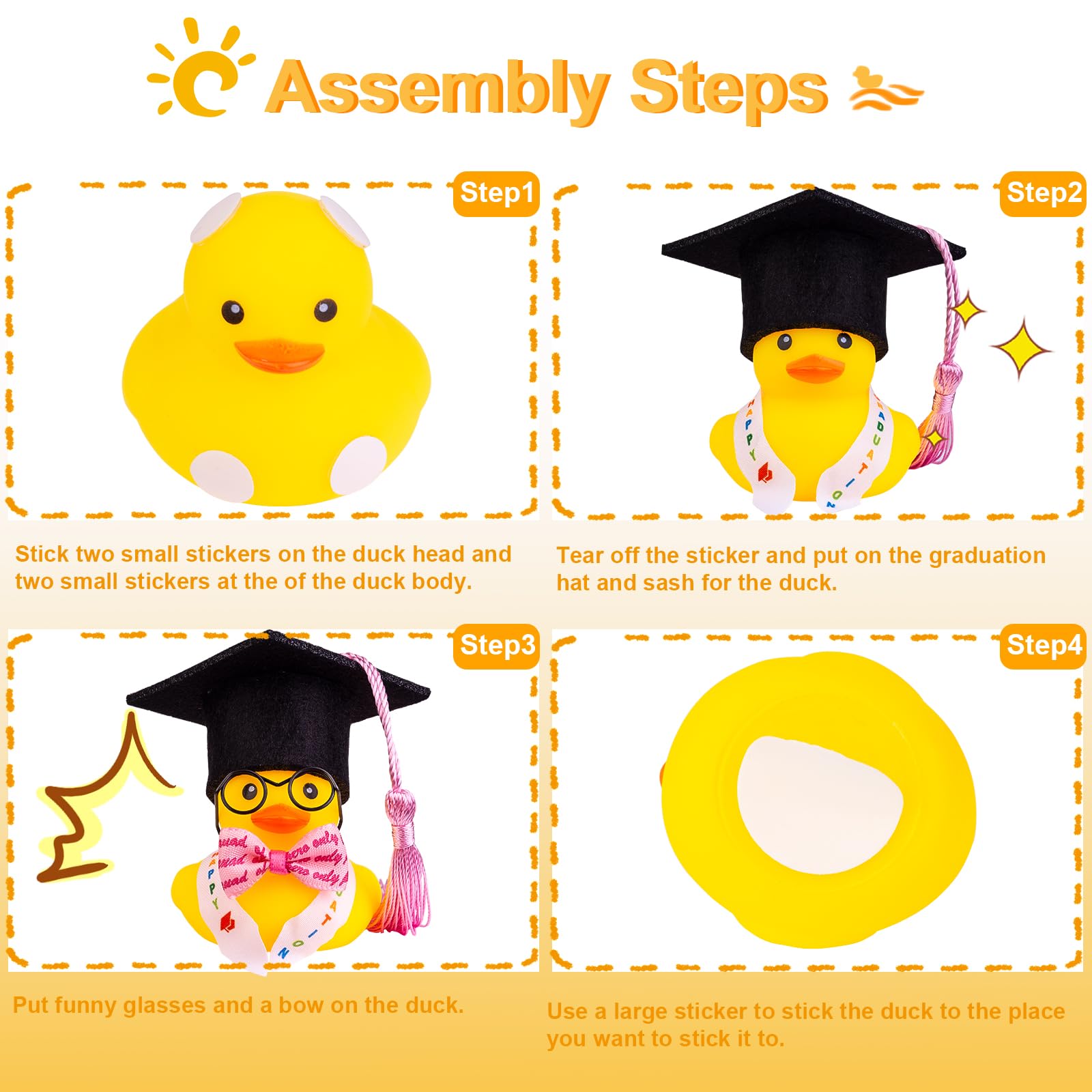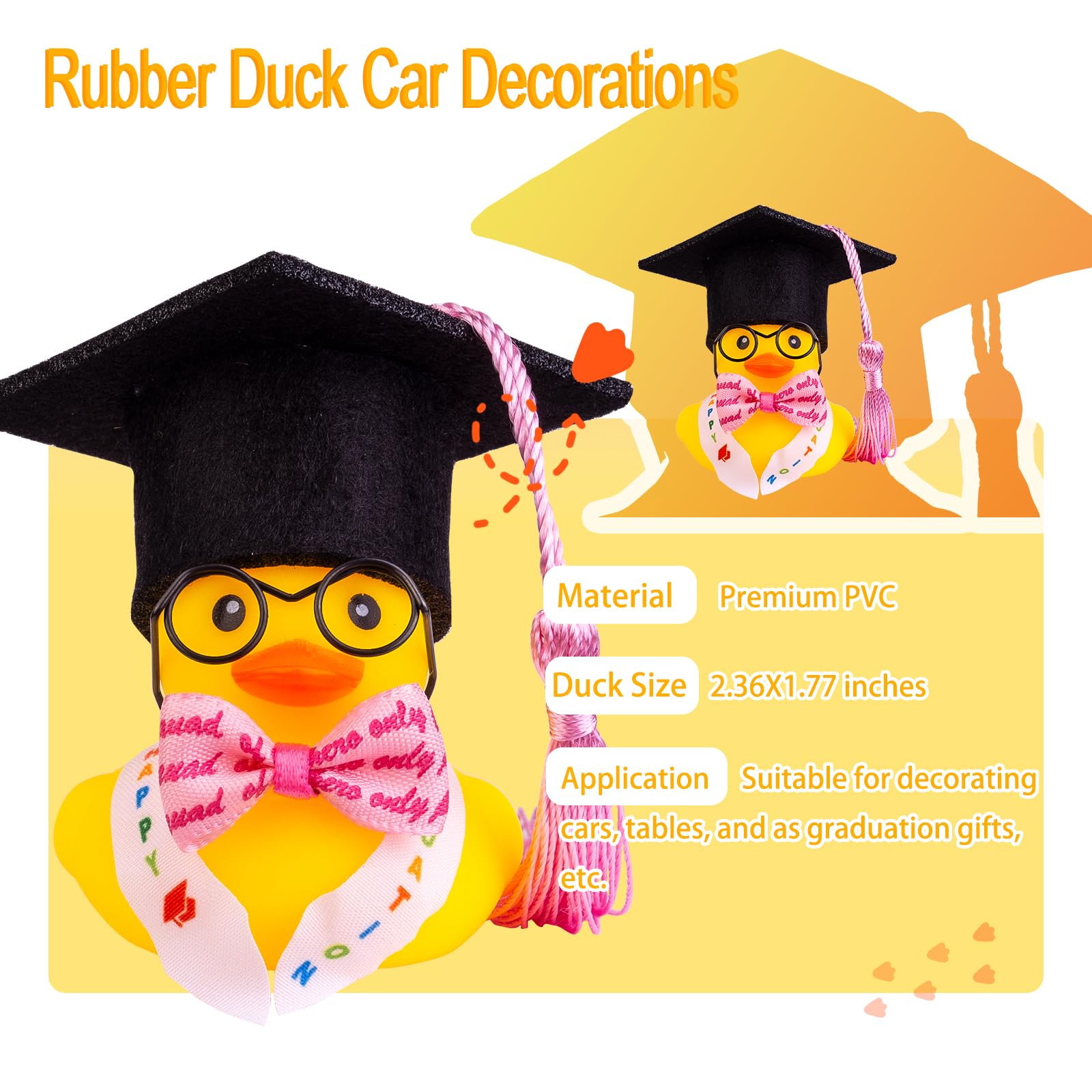 CoFuBcad 2 Pack Graduation Rubber Ducks Car Dashboard Decorations with Mini Graduation Hats Sashes Glasses
