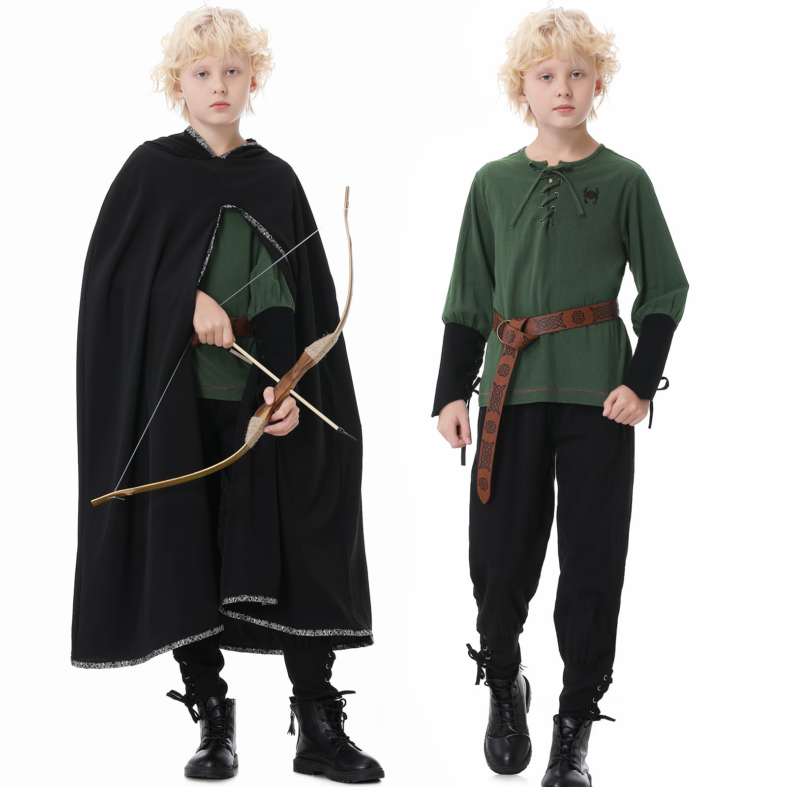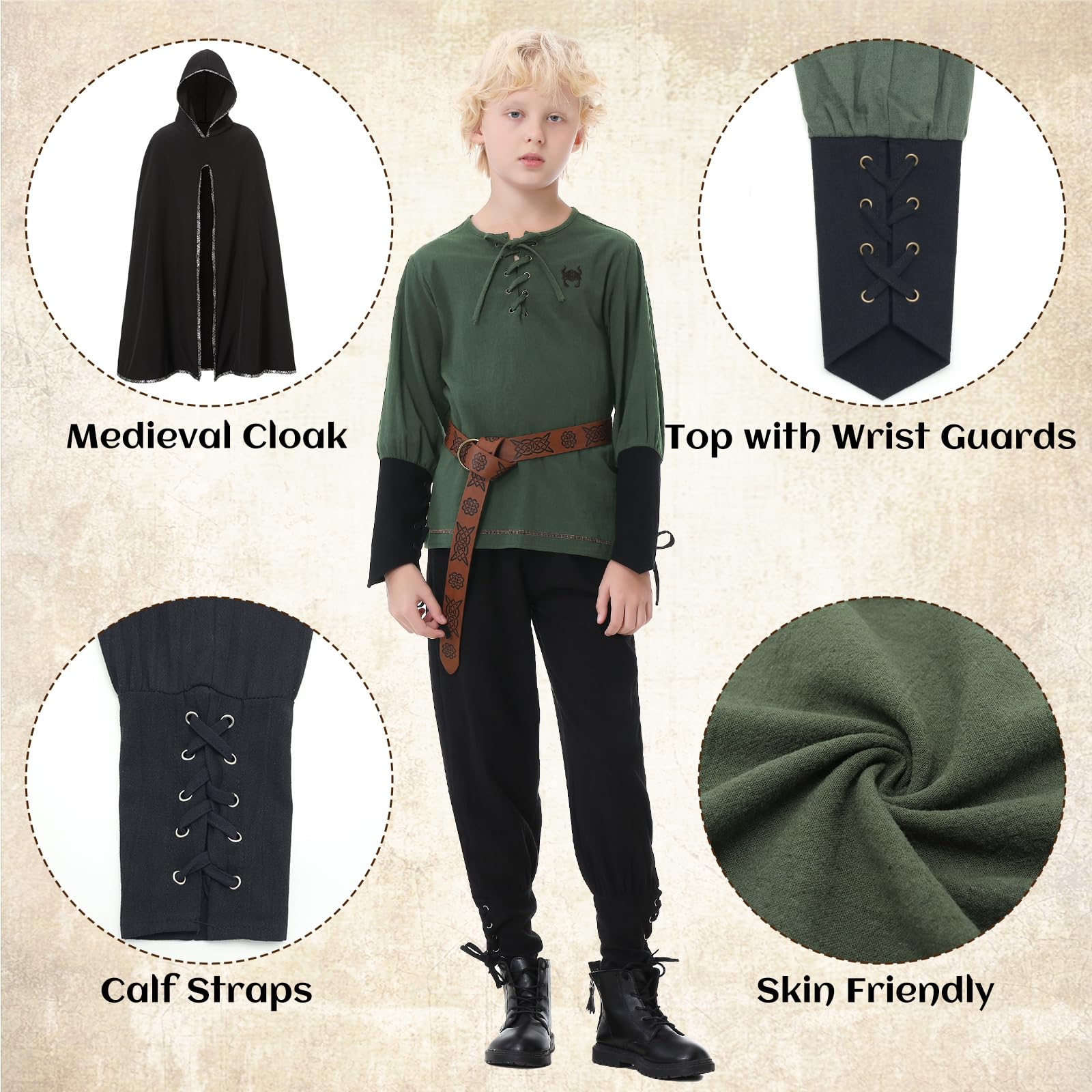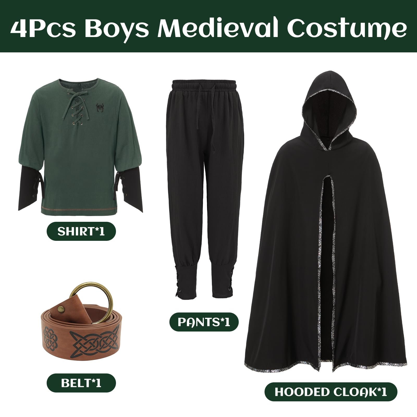 Ezuwail 4PCS Boys Renaissance Costumes Outfit Kids Medieval Viking Costume Sets for Halloween Boys Renaissance Accessories with