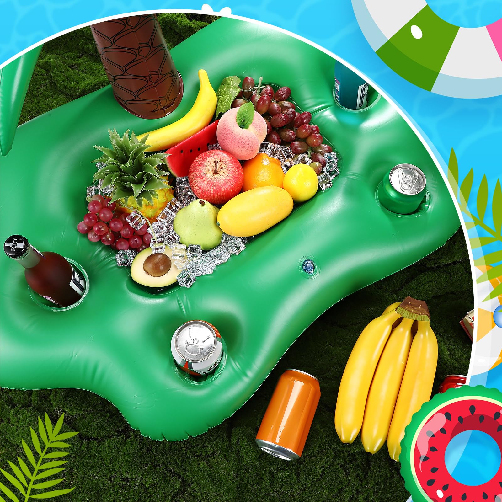 Features: The drink float, with its captivating coconut tree design and vibrant color scheme, doubles as a novel gift. Its PVC build and ample storage capacity make it an ideal present for swimming or pet owners, and people who enjoy outdoor activities. Whether it's a birthday, a housewarming, or just because, this inflatable coconut tree drink holder as a gift will delight the receiver, serving their cooling needs while injecting a dose of fun. Specifications: Material: PVC Color: green Size: as pictures shown Package includes: 1 x Coconut tree pool drink float Notes: Manual measurement, please allow slight errors on size. The color may exist a slight difference due to different screen displays. Our product is recommended for ages 6 and up.