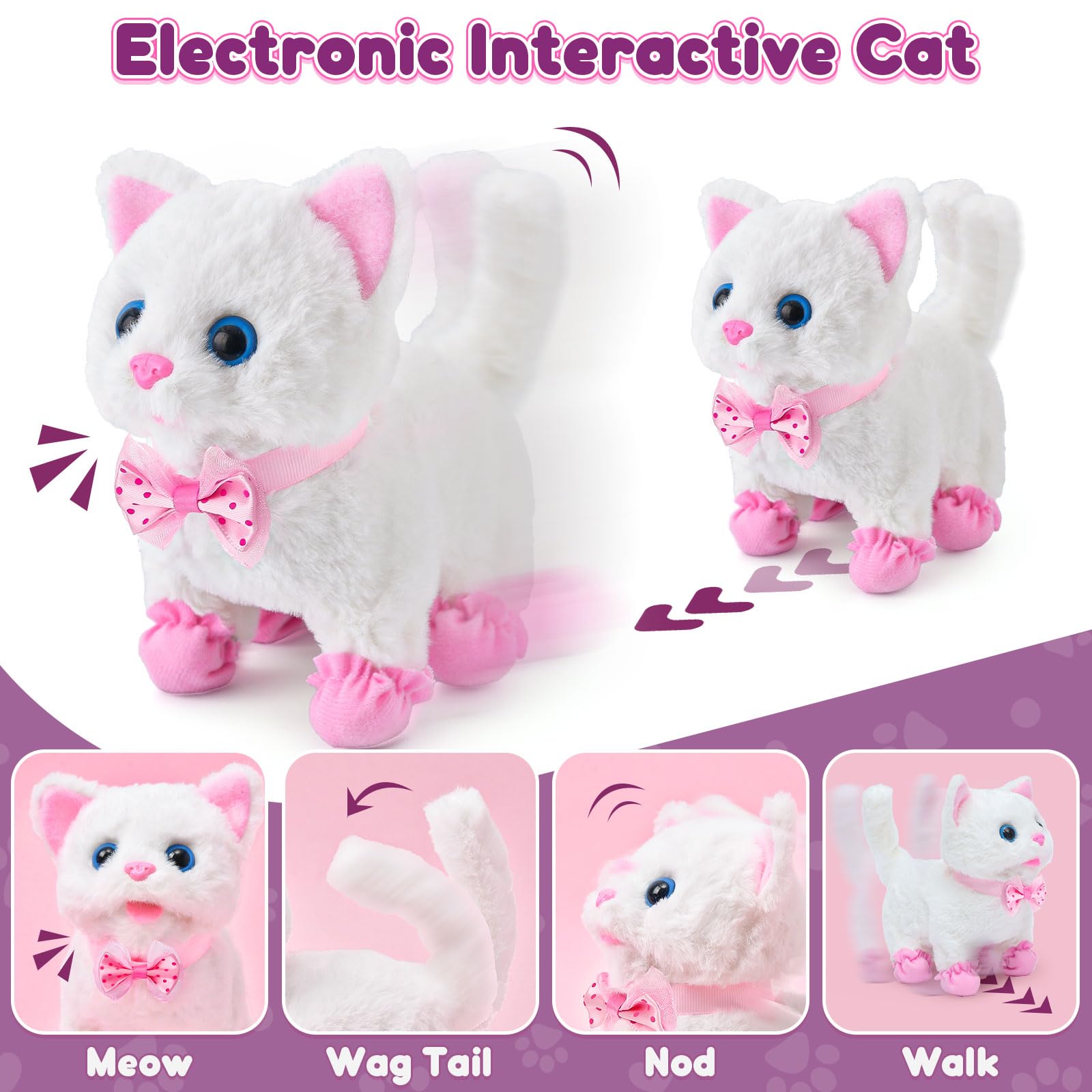 G.C Cat Toys For Kids Girls, Electronic Interactive Stuffed Cat Walk Meow And Wag Tail With Stroller Pet Care Accessories Toys P