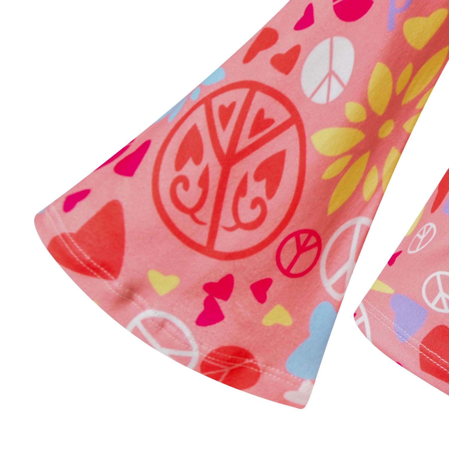 Iwalue 60S 70S Outfits Hippie Kid Girls Costume Set Disco Stylish Boho Flared Pants Accessories Set(Pink,11-12 Years)
