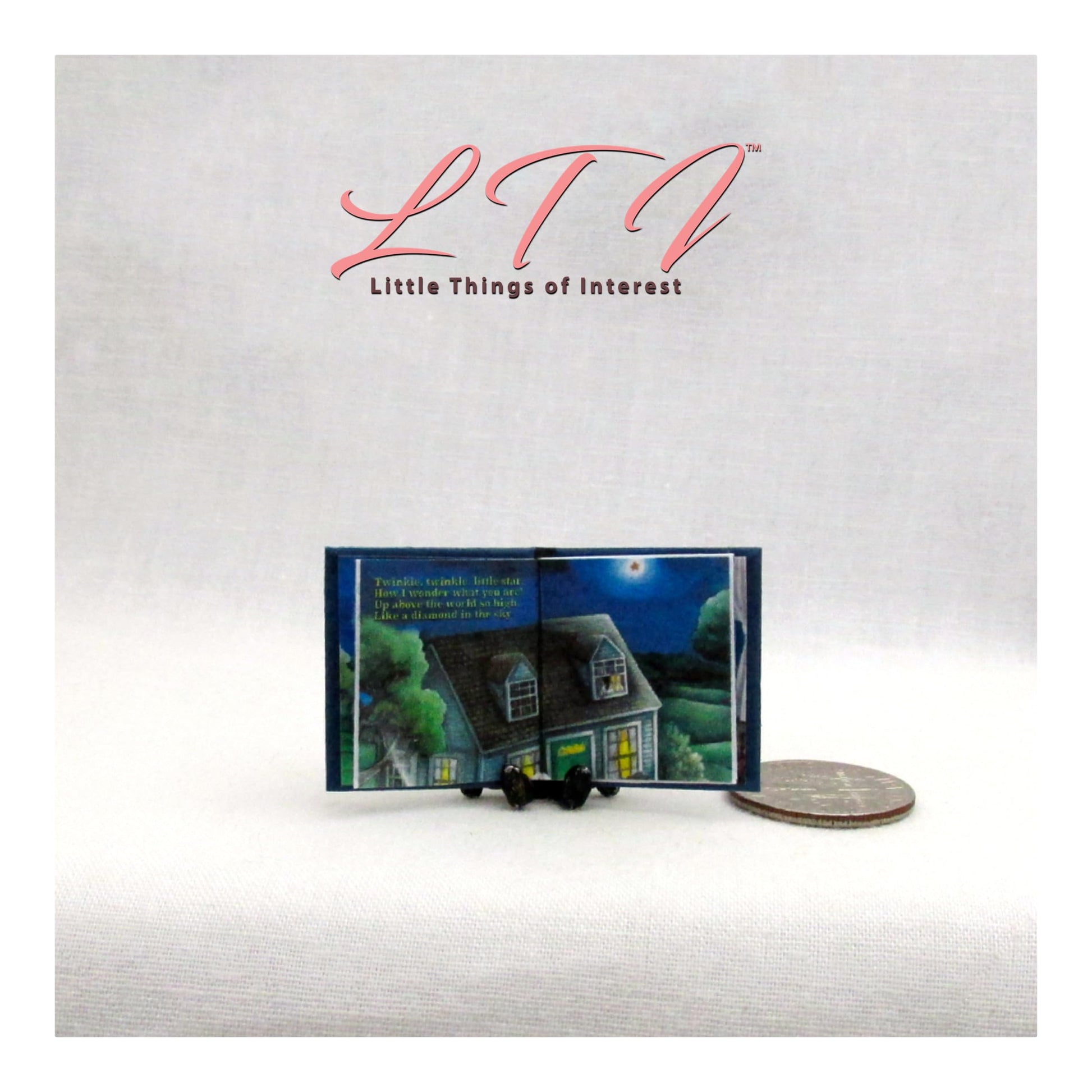 1:12 Scale Twinkle Twinkle Little Star opens and has 12 pages with beautiful full color illustrations. This miniature book measures approximately 7/8 of and inch high by 3/4 of an inch wide. Looks GREAT open or closed.
