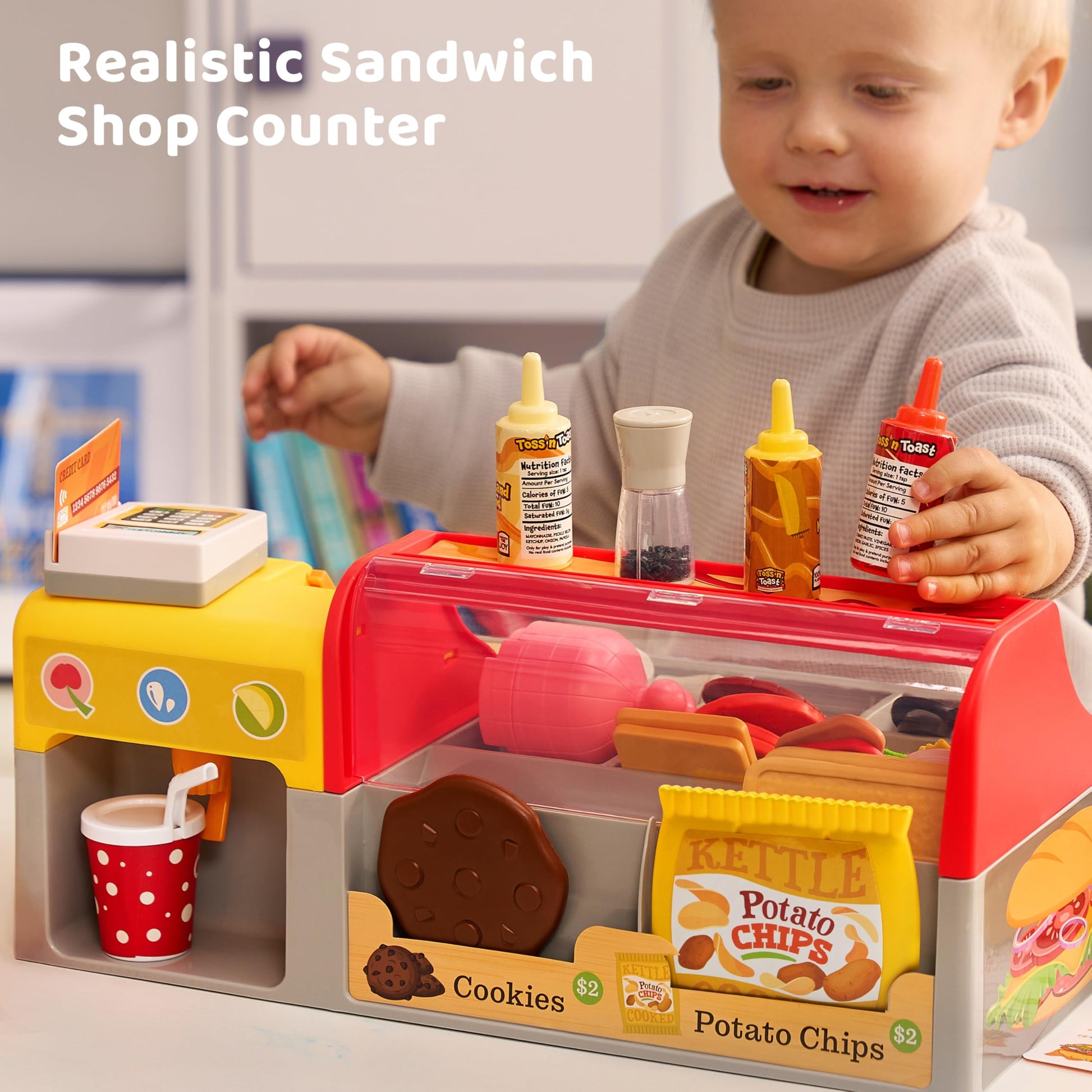 View comparePretend Play Food Toy For Kids Toddlers, Play Kitchen Accessories Include Sandwich Maker Toy With Slicer For Ham, Menu And Ingre