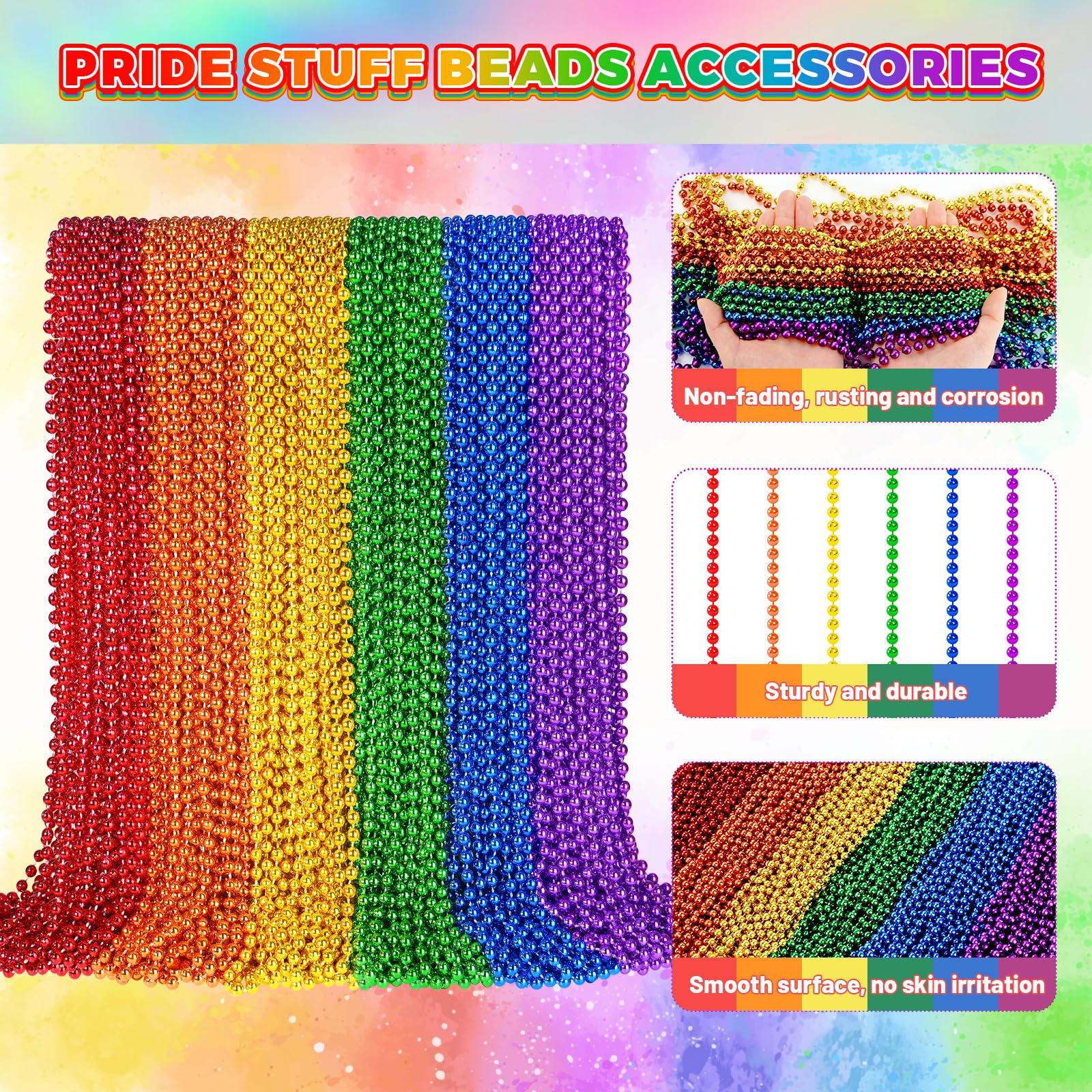 Shaoqinlin 102 Pcs Pride Beads Necklaces, Pride Accessories, Rainbow Beads Necklaces Bulk, Gay Lesbian Pride Month Parade Throws