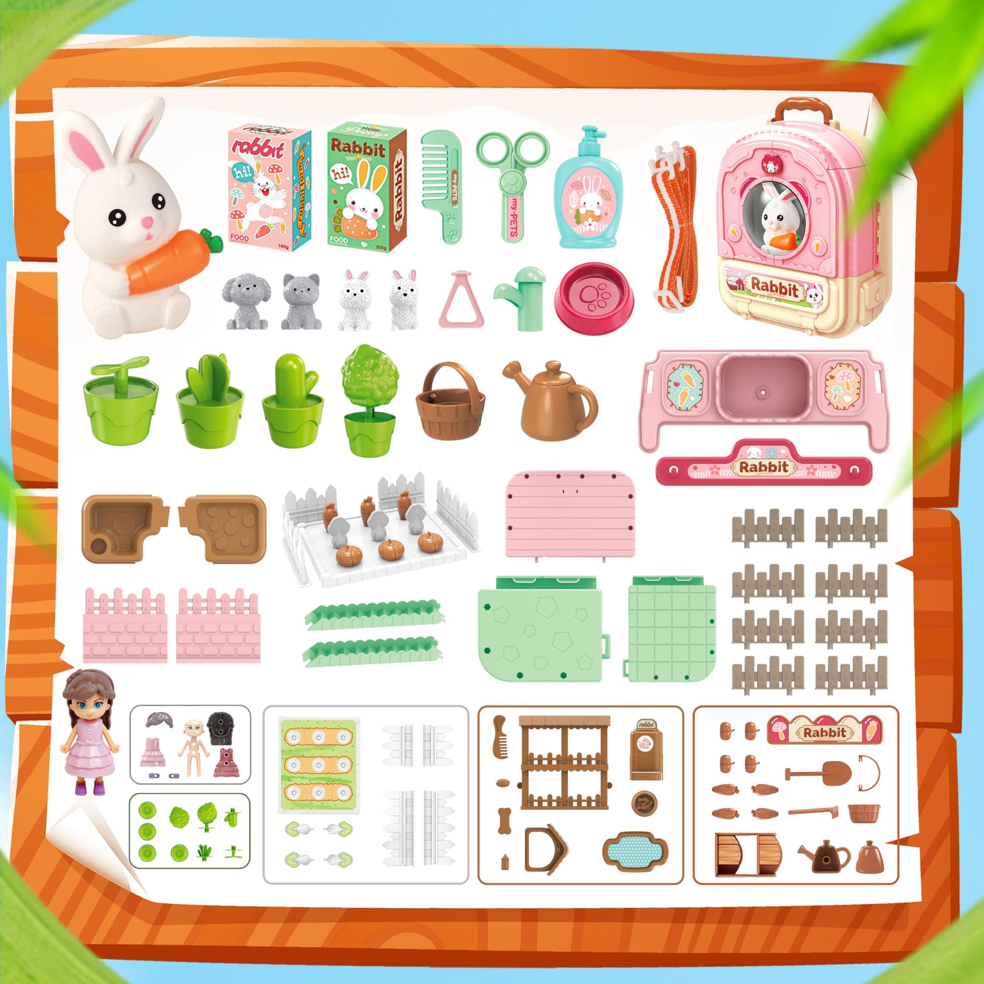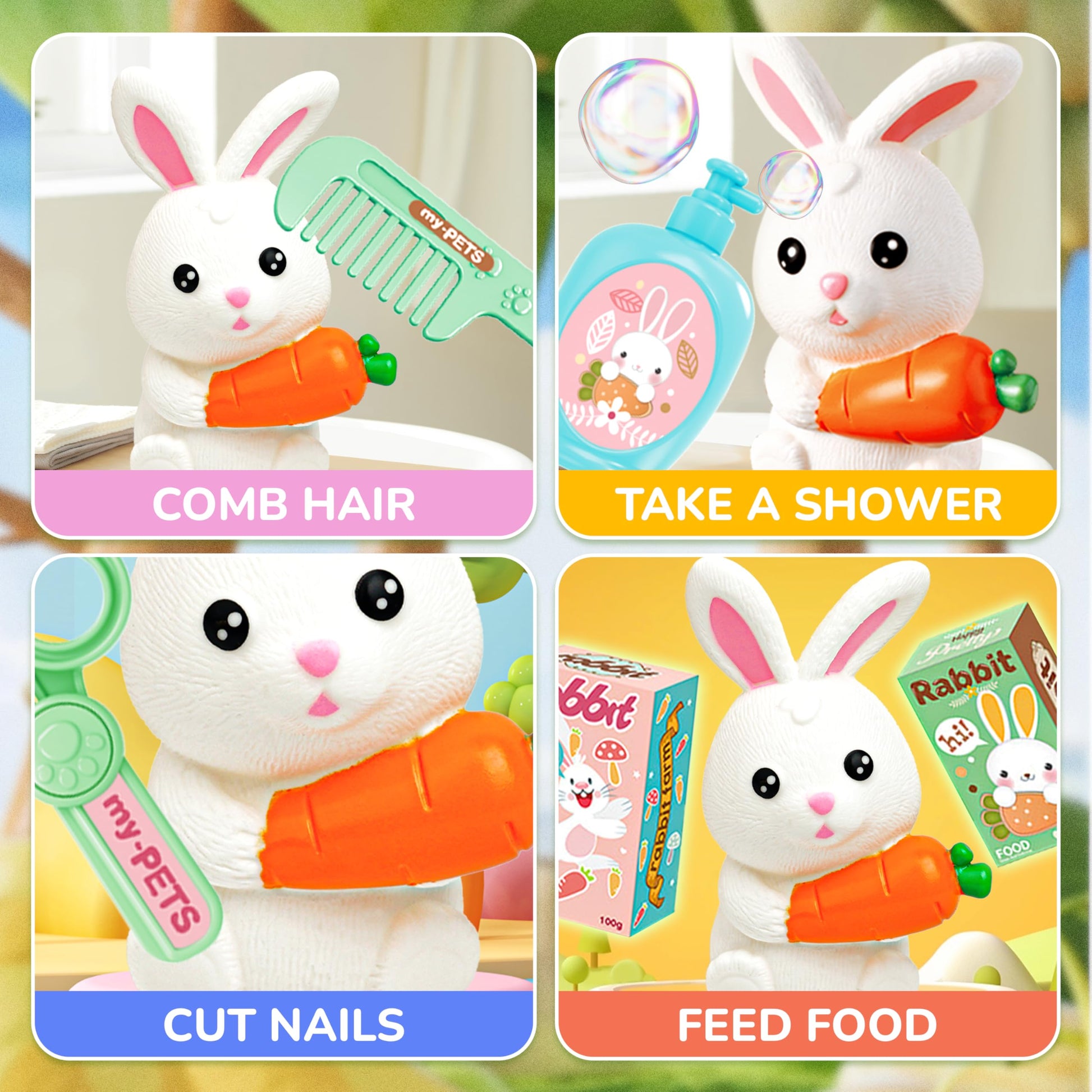 Introducing our 3-in-1 Pet Care Playset - the perfect combination of fun and education for kids who love animals! Designed with kids in mind, this playset offers endless hours of imaginative play and learning opportunities.With its vibrant and kid-friendly design, this playset is sure to capture the attention of young ones. They will love pretending to be a veterinarian, taking care of their beloved pets. The set includes all the essential tools needed for a complete pet care experience, making it an ideal choice for both boys and girls.Let your child's imagination soar as they play and learn simultaneously. This playset encourages creative thinking, empathy, and responsibility towards animals. As they engage in pretend play, they will develop essential life skills and gain a better understanding of pet care.Made from high-quality materials, this playset is built to withstand the rough and tumble of playtime. The cute rabbit toys included are perfect companions for your child's imaginative adventures. The set comes neatly packed in a convenient toy suitcase, making it easy to carry and store.Ideal for toddlers and kids aged 6-8, this veterinarian playset is a fantastic gift for birthdays, holidays, or any occasion. Watch as their faces light up with joy when they receive this wonderful toy set.Encourage your child's love for animals and foster their imagination with our Pet Care Playset. Order now and let the fun and learning begin!
