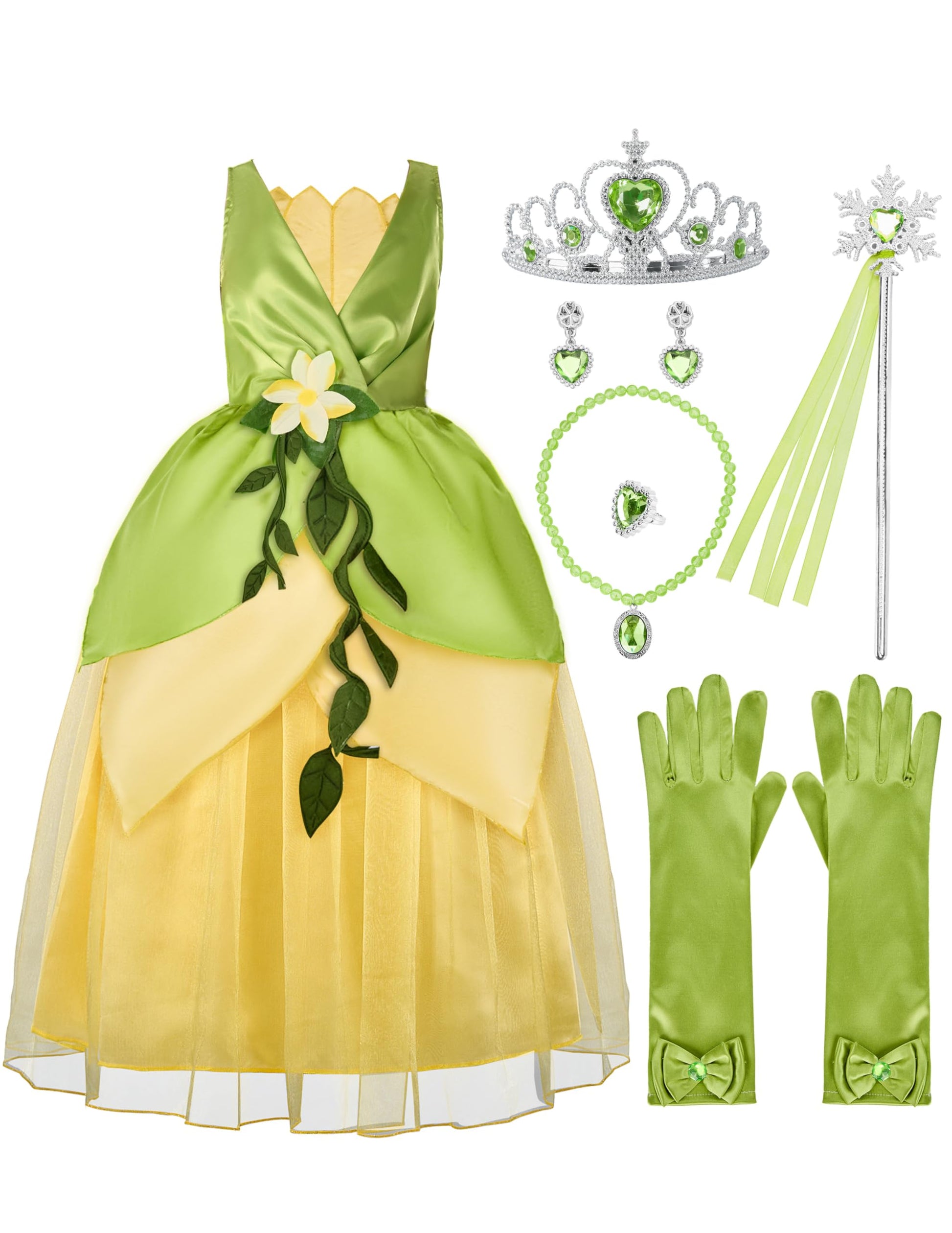 Spooktacular Creations Halloween Girls Frog Princess Dress, Green Fairy Costume for Kids, Fancy Gown Dress with Accessories for