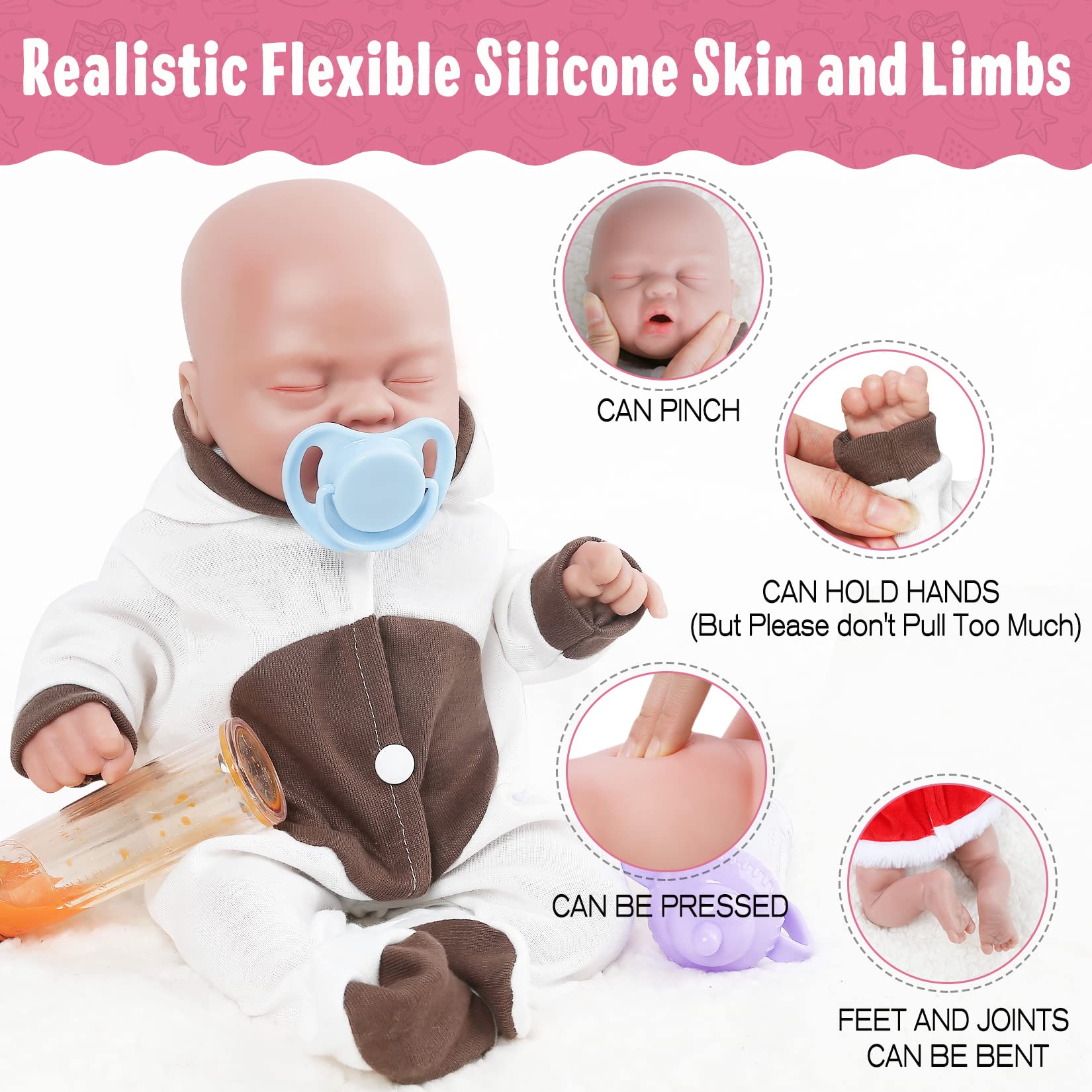 User notice : Our realistic silicone baby doll features a distinct ''birthmark'' on its head, setting it apart from other silicone babies on the market. This exclusive characteristic enhances its appeal and uniqueness | Safety material : The baby is made of platinum liquid silicone, it is so safety and non-toxic, it is Weighted Body for a ''Real'' baby feel | Full silicone body : it have solid silicone body, and not like vinyl dolls are hollow. Need to be handled as you would handle a newborn baby, especially the soft heavy head | More real feelings : Full silicone baby doll touching feeling is like a real baby. Its hands and feet are so soft. It feels like a real baby in your arms, it is suitable for baby or little kid. Your kid will have a good time with it | Collector's and kids good choice : It's a perfect present for kids at special festivals like birthdays, Children's Day and Halloween, also the good choice for Christmas. It will be a friend of your baby and one of your family