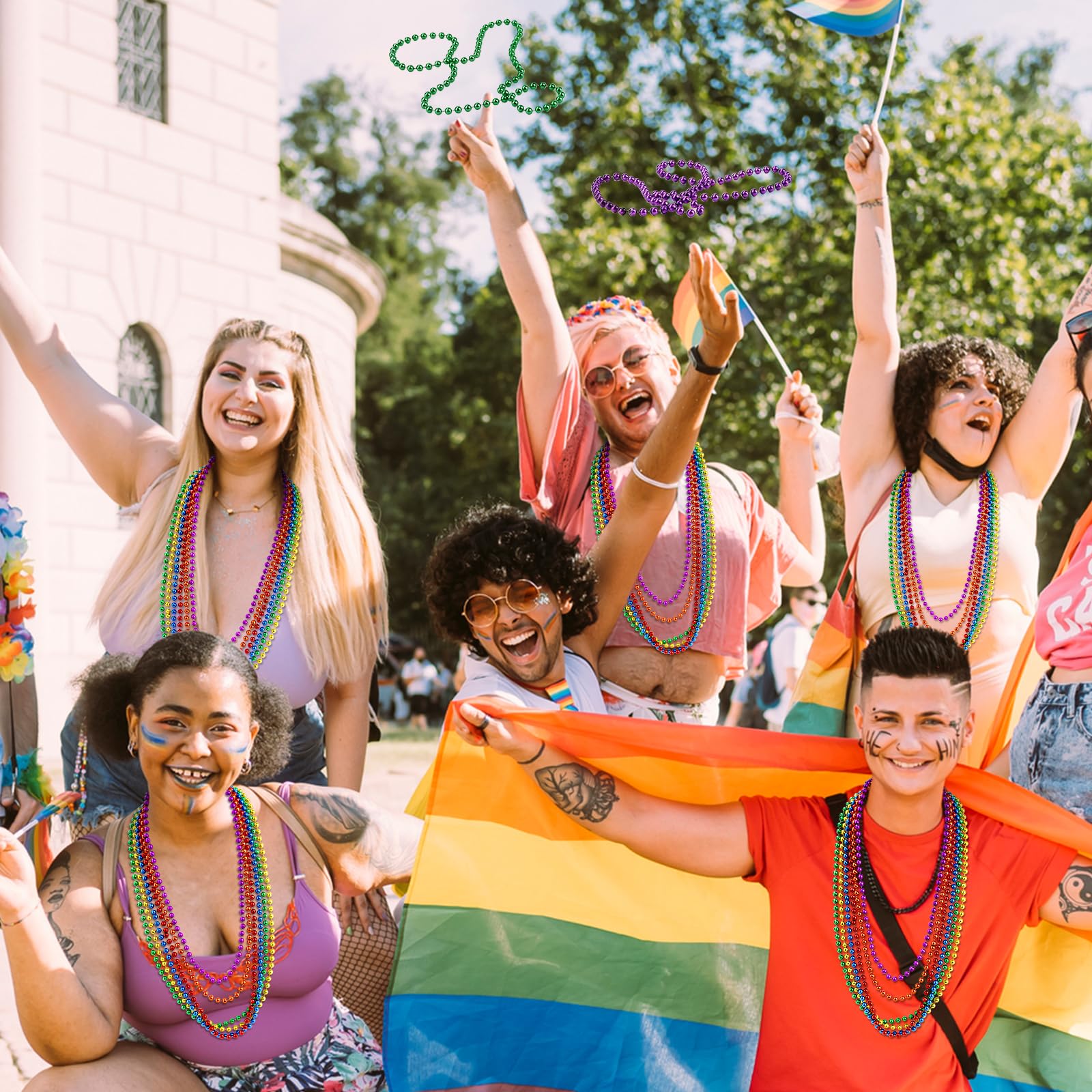 72 PCS Pride Beads Necklaces, LGBTQ Pride Beads Stuff Pride Beads Accessories Metallic Rainbow Bead Necklaces for Gay Lesbian Pride Month Parade Throws Rainbow Pride Party Favors in 6 Colors