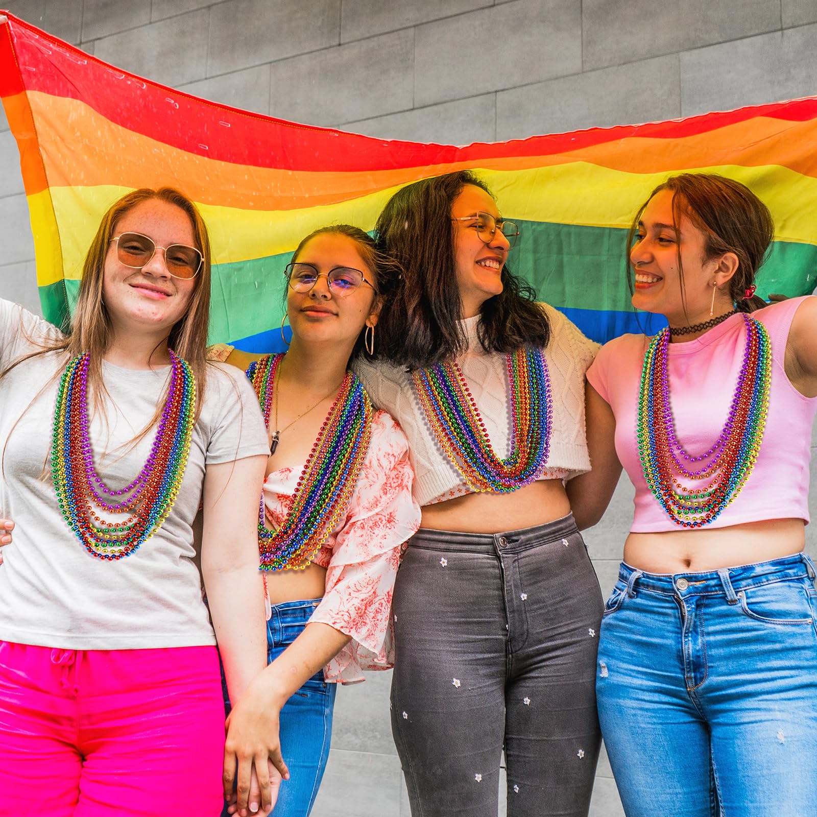 Yaxinrui 72 Pcs Pride Beads Necklaces, Lgbtq Pride Beads Stuff Accessories Metallic Rainbow Bead Necklaces For Gay Lesbian Pride