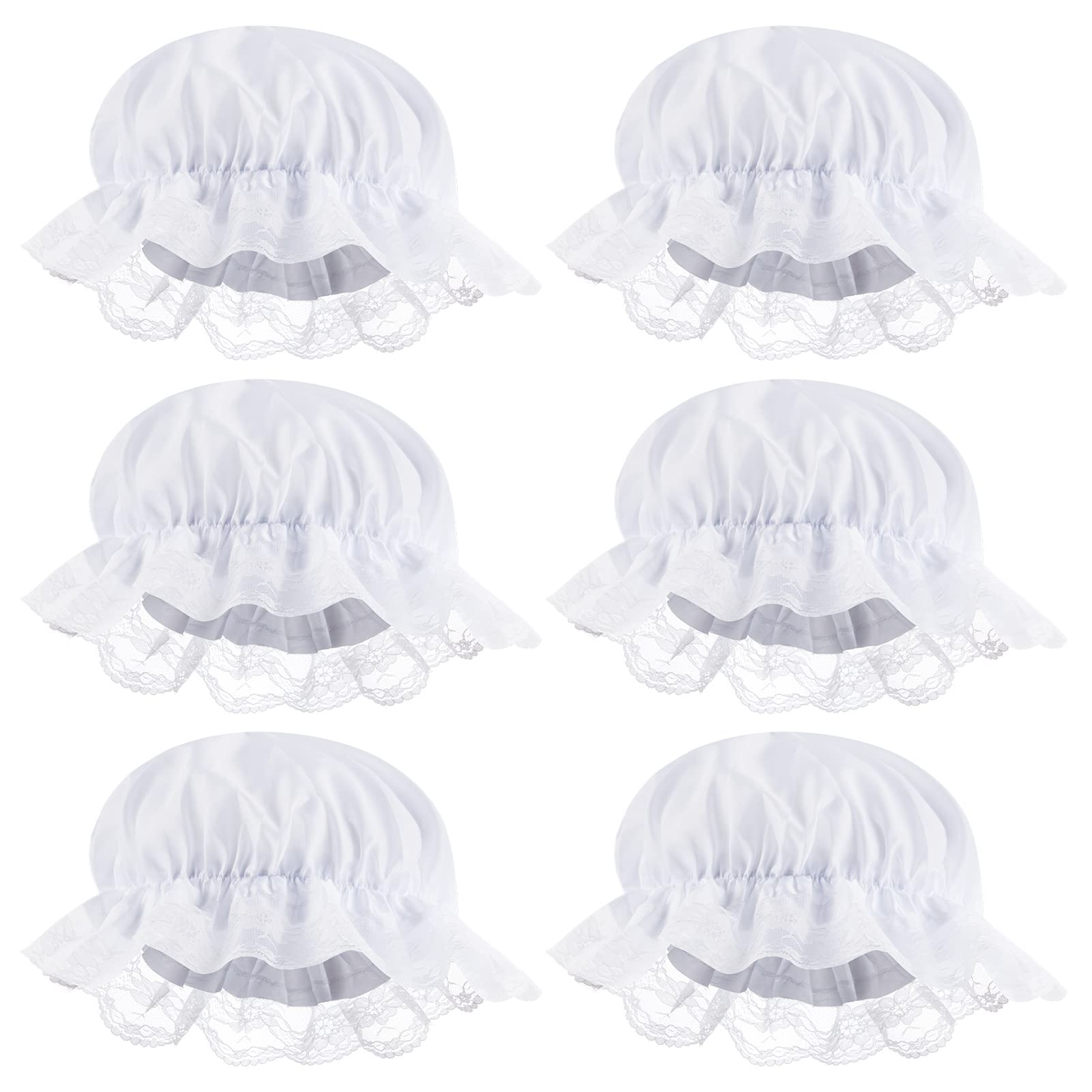 Zjoey 6 Pcs White Mob Cap Costume Pioneer Bonnet Women'S Colonial Bonnet Lace Frilly Grandma Night Hat Accessories(6 Pcs White)