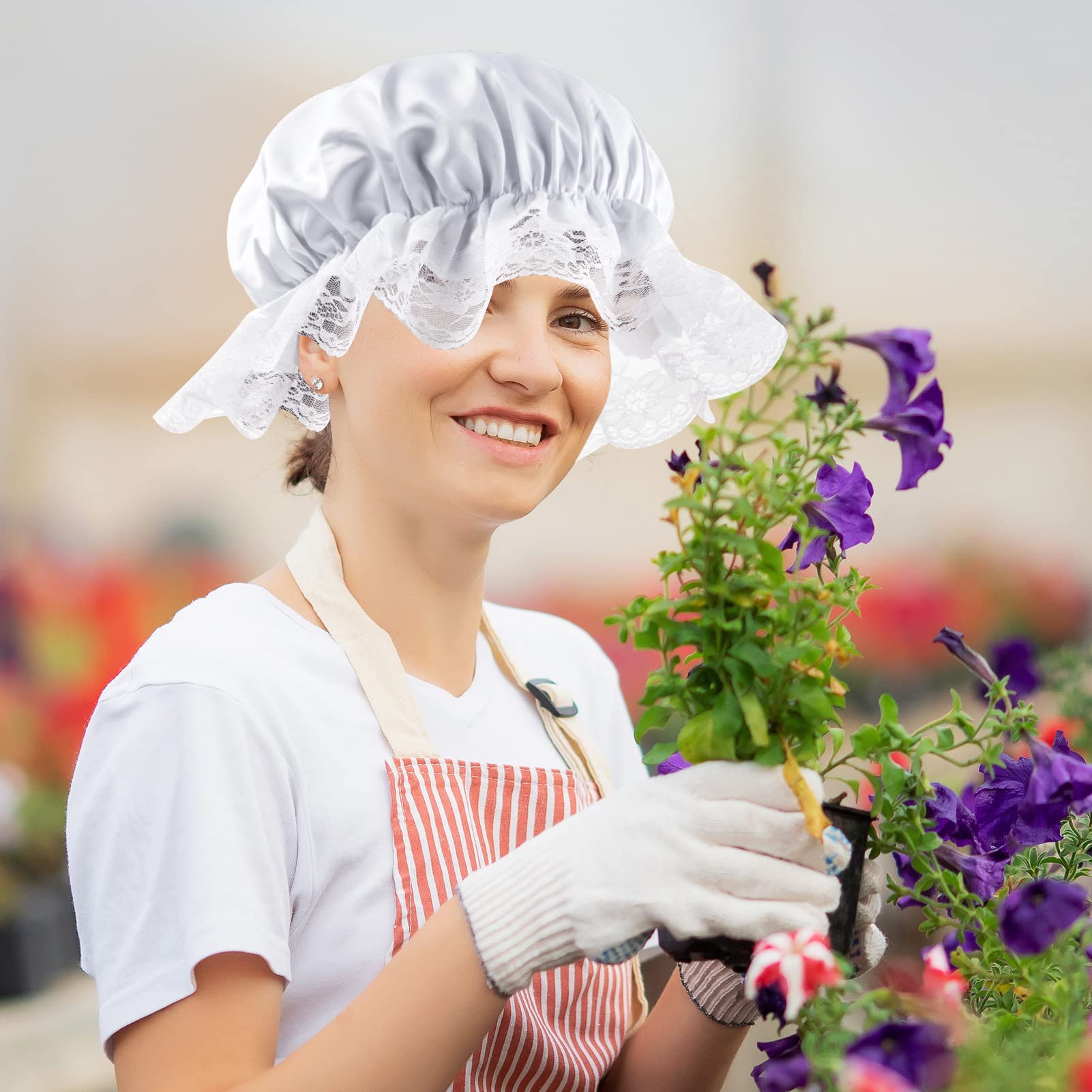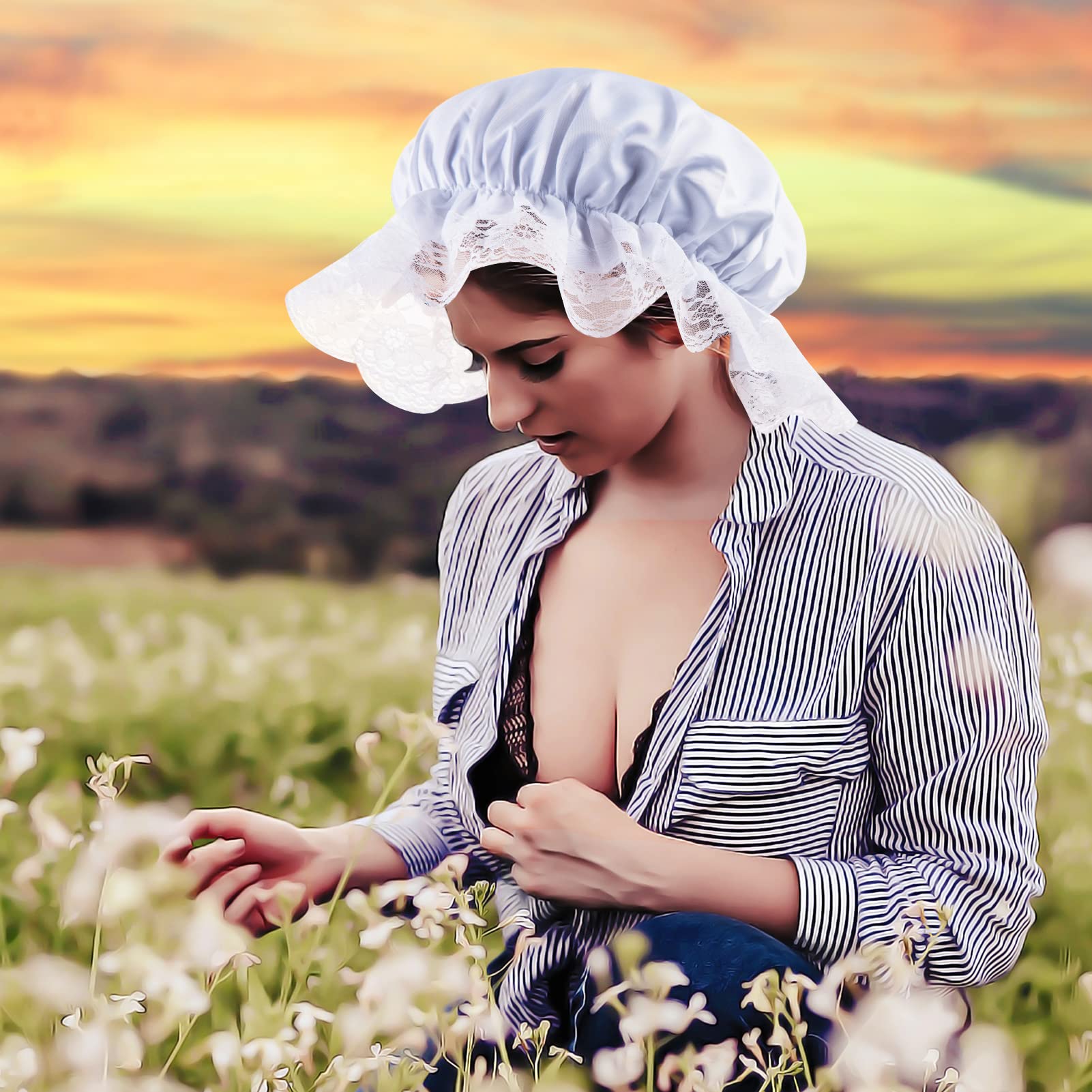 View compareZjoey 6 Pcs White Mob Cap Costume Pioneer Bonnet Women'S Colonial Bonnet Lace Frilly Grandma Night Hat Accessories(6 Pcs White)