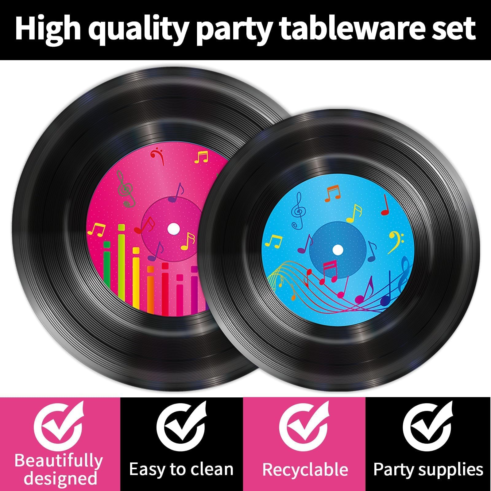 • Q: What occasions are suitable for this tableware set? A: This tableware set is ideal for various occasions, particularly 1950s themed parties, retro birthday celebrations, and music-themed gatherings, adding a nostalgic touch to your festivities.