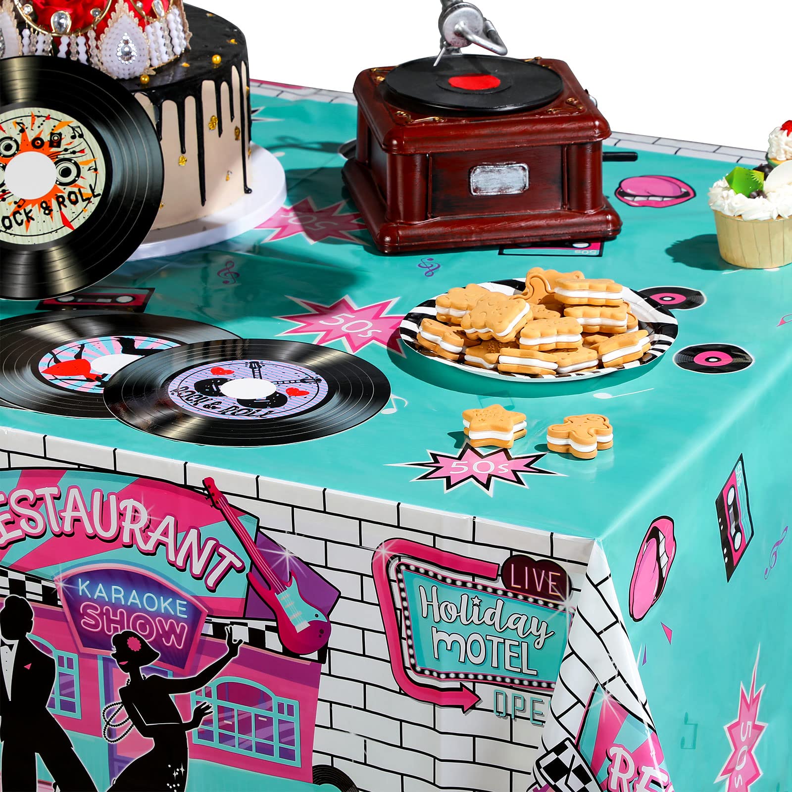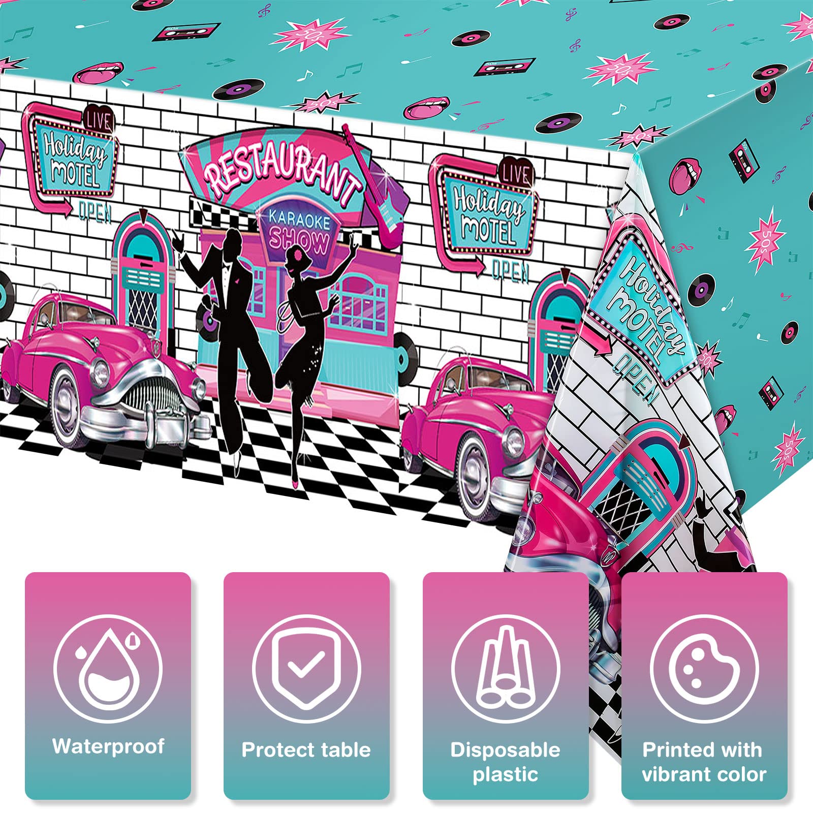 3 Pieces 50s Tablecloth 50s Party Decorations Rock and Roll Party Table Cover Large 1950s Plastic Tablecloth Back to 50s Rock