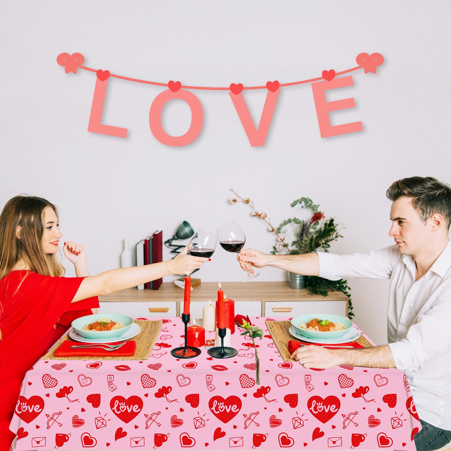 Oil And Water-Resistant Plastic Tablecloths Can Help You Keep Your Table Clean. You Can Use The Beautiful And Eye-Catching Pink Valentines Day Party Table Cloth To Decorate Your Desk Or Table In Your Living Room, Bedroom, Kitchen, And Reading Room.Package Includes: 4 X Love Hearts Valentins Day Party Tableclothsproduct Size: 51X 86''/130 X 220Cm