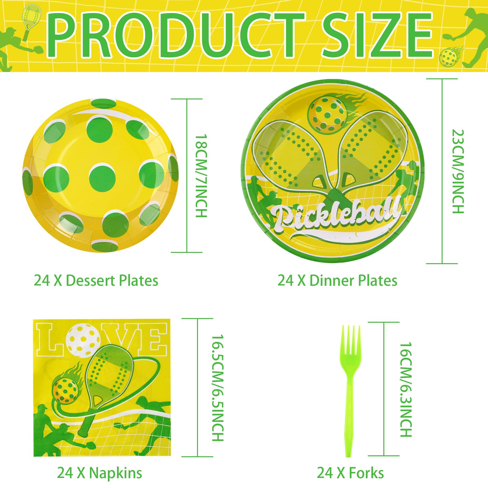 96Pcs Pickleball Party Supplies Pickleball Party Plates Napkins Forks Disposable Pickleball Tableware Set For Pickle Ball Party