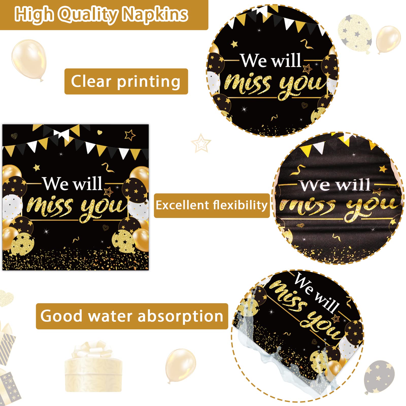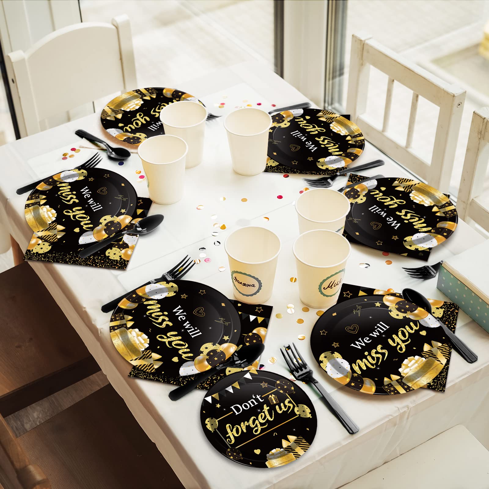 View compare96pcs We Will Miss You Party Paper Plate and Napkin Farewell Party Decoration Going Away Party Disposable Tableware Set Gold and