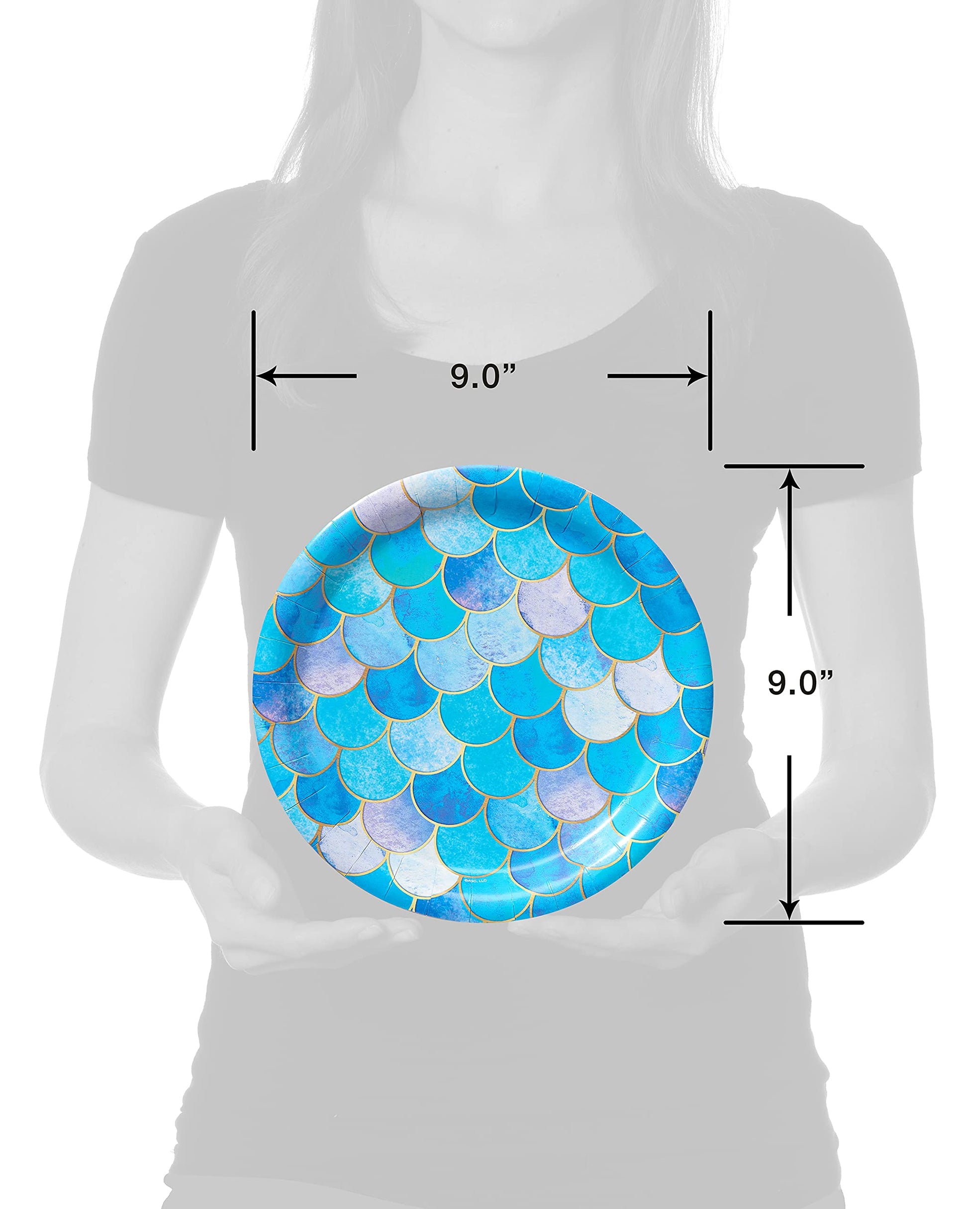 - Q: What is the size of the American Greetings Mermaid Dinner Plates? A: Each dinner plate measures 9 inches in diameter, making them ideal for serving cake, ice cream, or pizza at your party.
