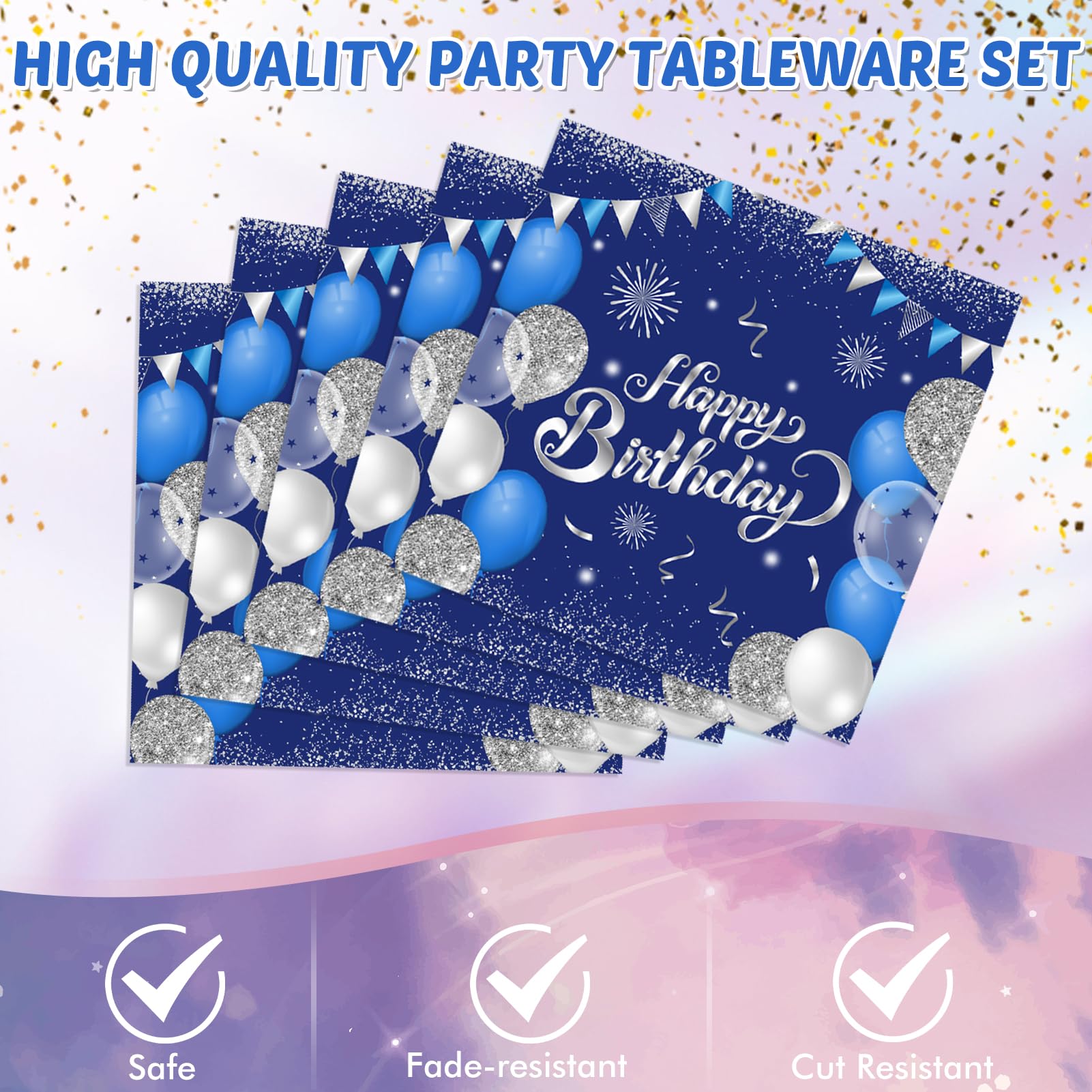View compareBlue 90Th Birthday Decorations For Men Navy Blue Silver Happy 90Th Birthday Tableware Set Include Happy 90Th Birthday Plates Nap