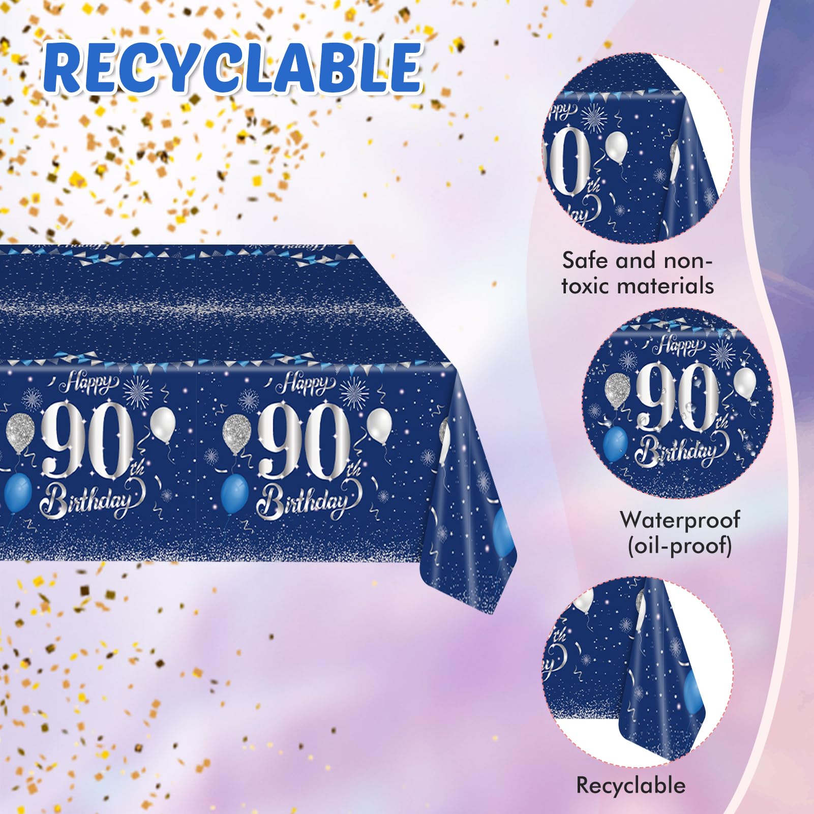 - Q: How many pieces are included in the 90th birthday tableware set? A: The Navy Blue Silver Happy Birthday Tableware Set includes a total of 41 pieces: 20 birthday plates, 20 birthday napkins, and 1 navy blue silver tablecloth, providing everything you need for a festive celebration.