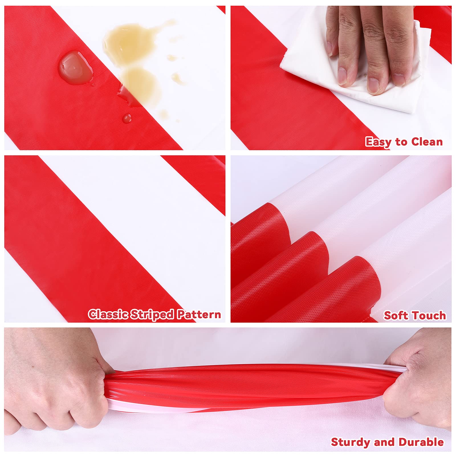 Elcoho 4 Pack Red and White Stripes Tablecloth Plastic Stripe Table Cover Carnival Circus Tablecloths for Carnival Circus Themed