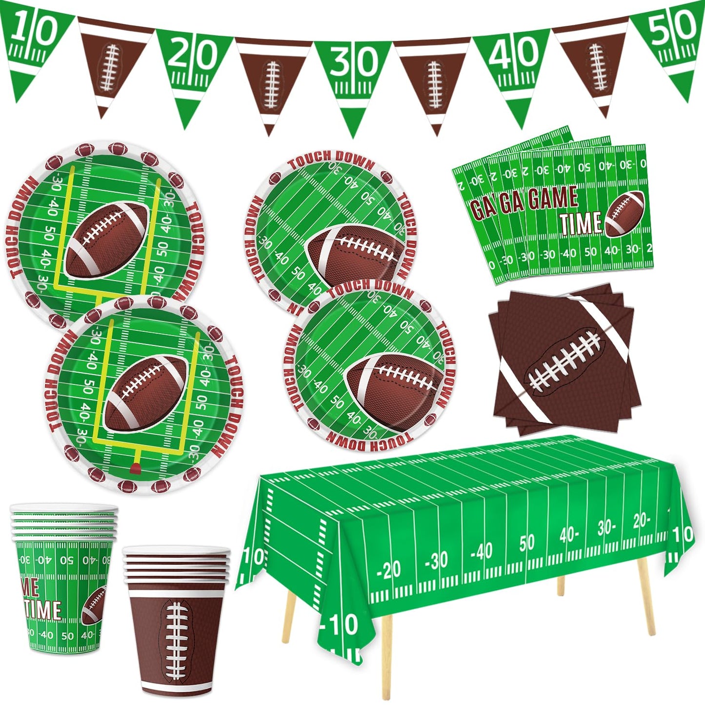 Football Party Supplies Tableware Set Football Theme Party Decorations Including Plates Napkins Cups Touchdown Tablecloth Banner