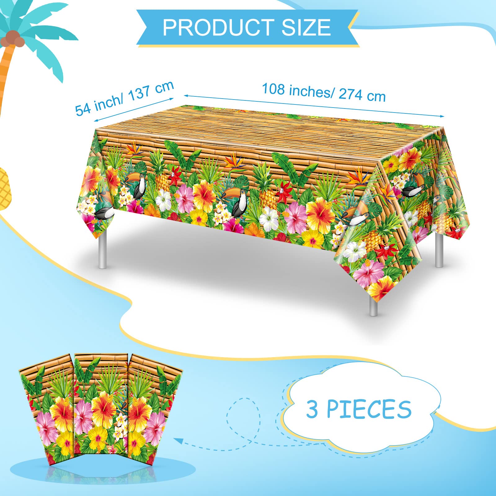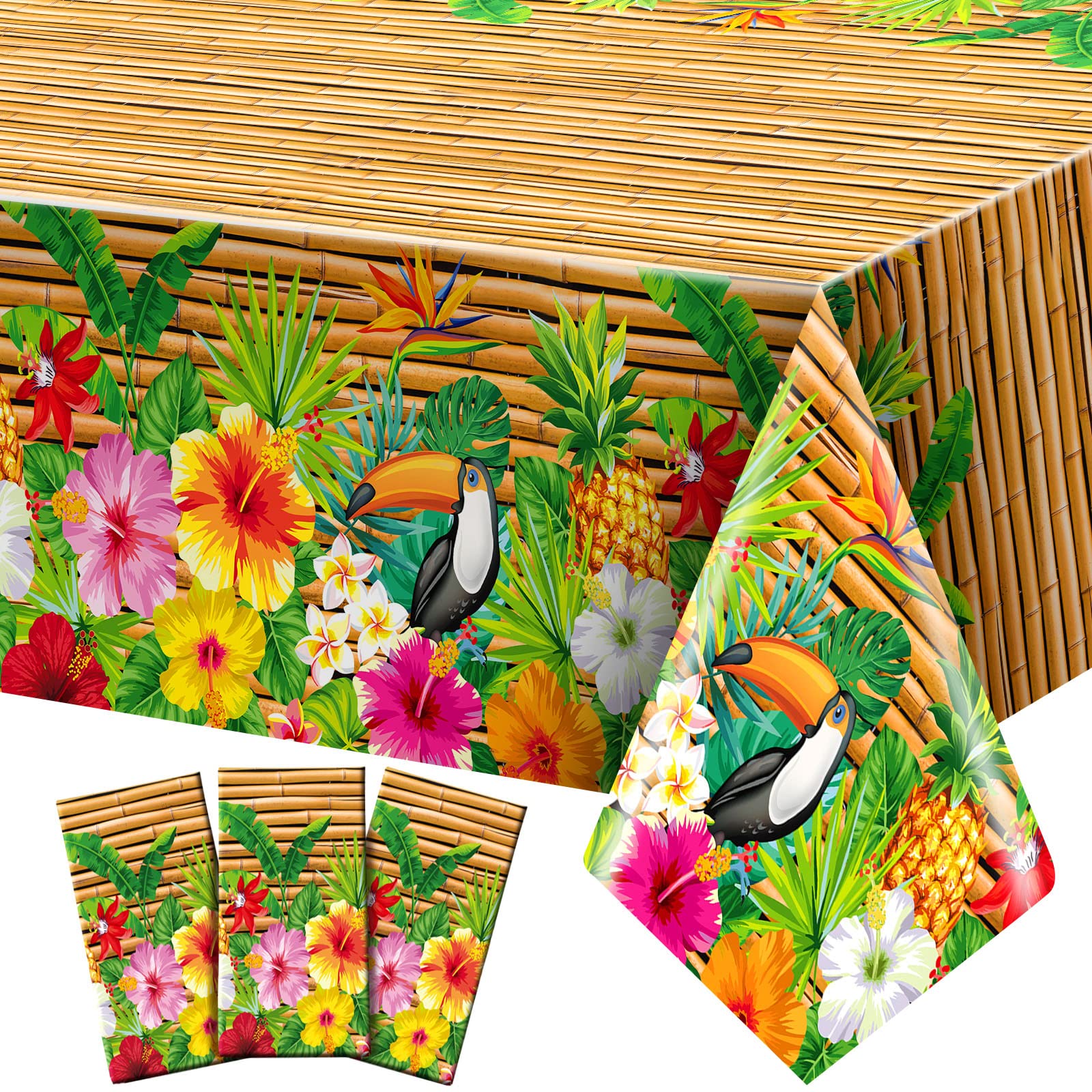 Frienda Tiki Tablecloth Tiki Decorations Luau Table Cover Hawaiian Party Plastic Table Cloth Disposable Tiki Totem Decor For Hawaii Beach Tropical Decoration Supplies Aloha (Modern Style, 3 Pieces)