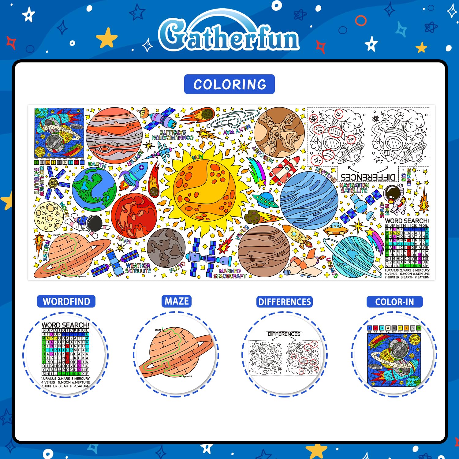 View compareGiant Coloring Poster For Classroom Wall - Versatile 31.5 X 72 Inches Outer Space Activity Poster/Table Cover,School Parties, Ou