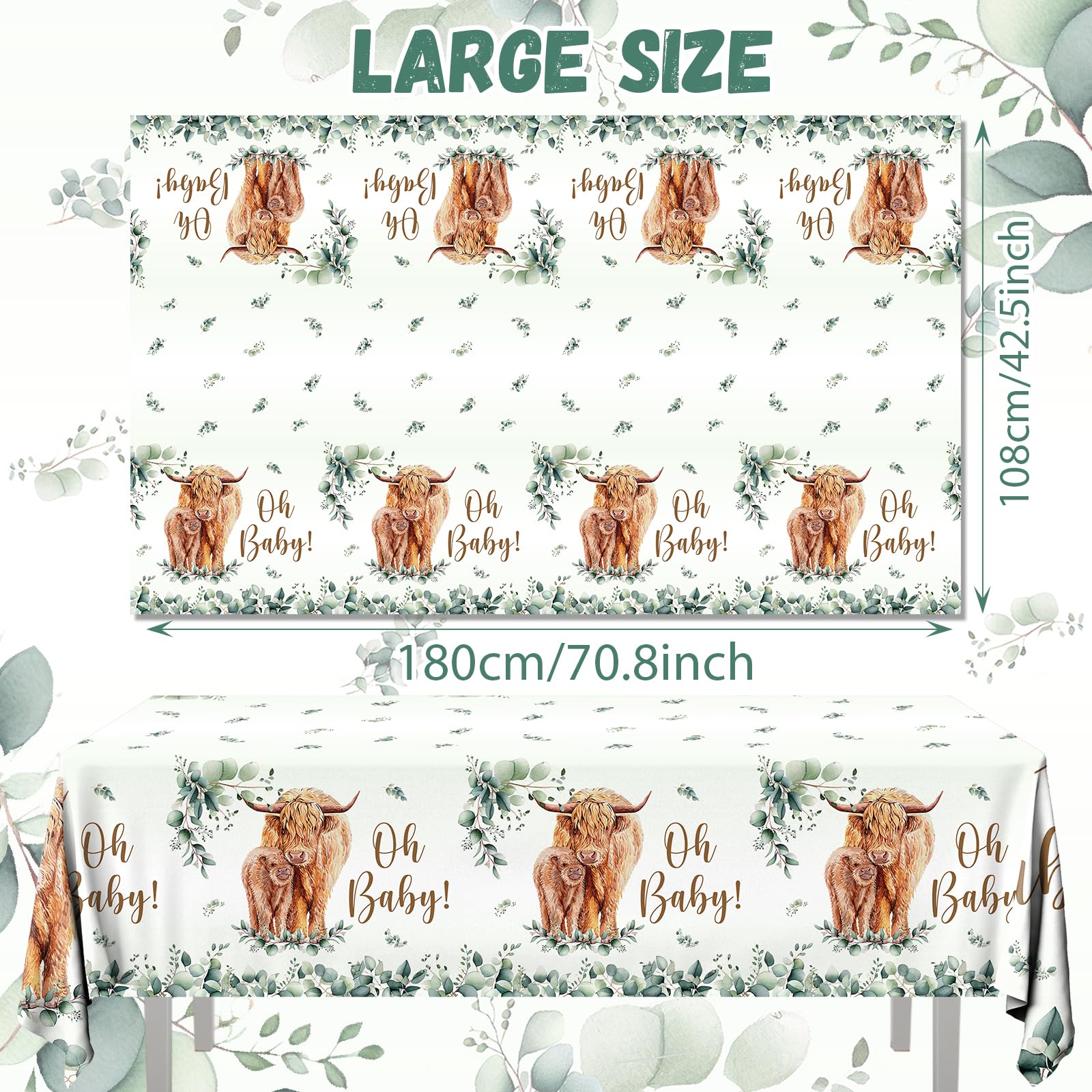- Q: What occasions can I use the HAKOTI Highland Cow Tablecloth for? A: The HAKOTI Highland Cow Tablecloth is perfect for various occasions, including baby showers, birthday parties, farm animal themed parties, and any highland cow themed celebrations.