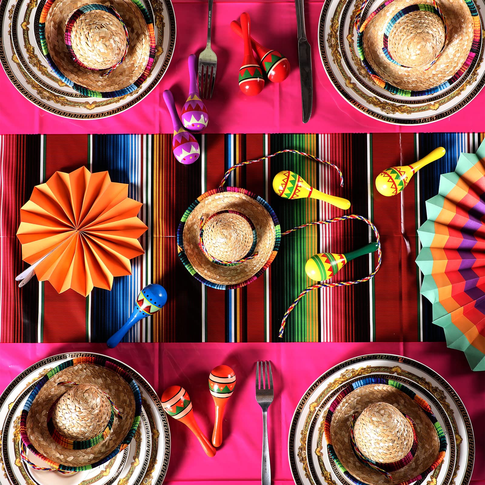 Hosuly Mexican Fiesta Tablecloth 54 x 108 Party Plastic Tablecloth Striped Table Cover for Mexican Fiesta Party Decorations(