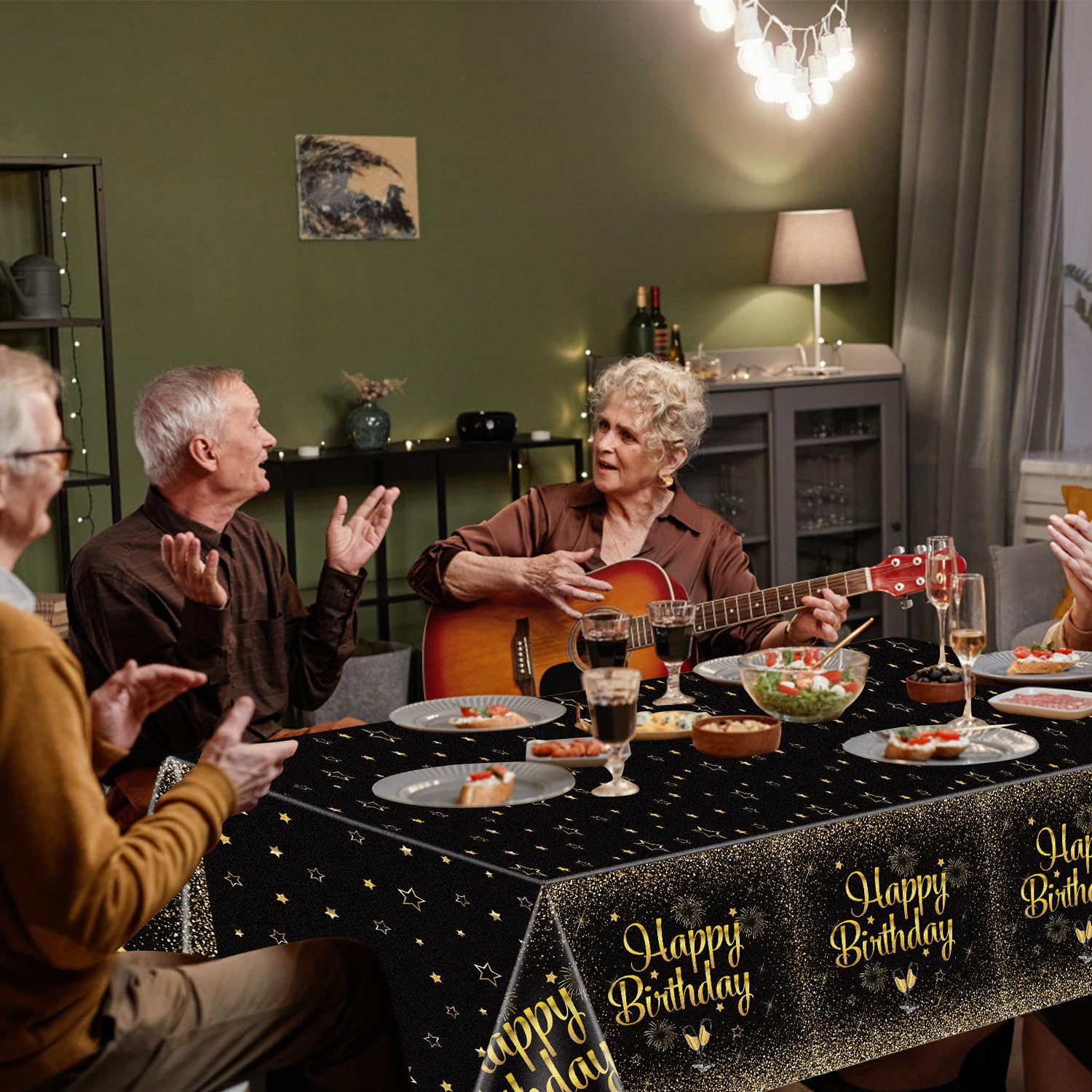 Package Includes: 2 pieces of happy birthday tablecloth (51x87inch/130x220cm) Features: These black gold tablecloths are made of sturdy and thick quality PE plastic, not easy to tear, waterproof, and stainproof. Easy to clean up after the party, you can simply wipe and store them for next use, or just throw them away. Its very suitable to use at birthday parties for all ages and suitable for indoor and outdoor use. Lets spend more time celebrating a party, instead of cleaning up!